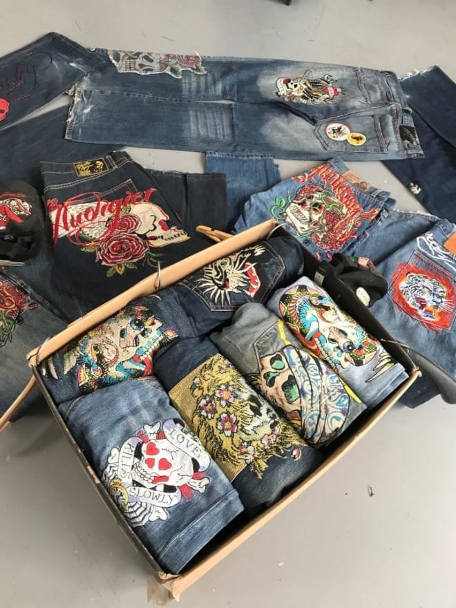 The bundle contains the following brands: Carhartt, fruit of the loom, Polo, swingster, Champion, stussy, A4, Nfl, Nascar.
