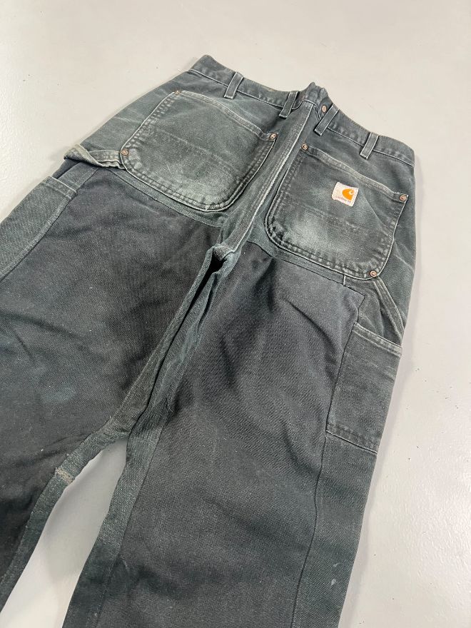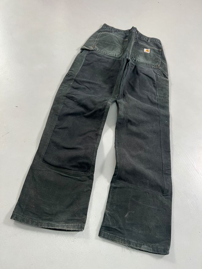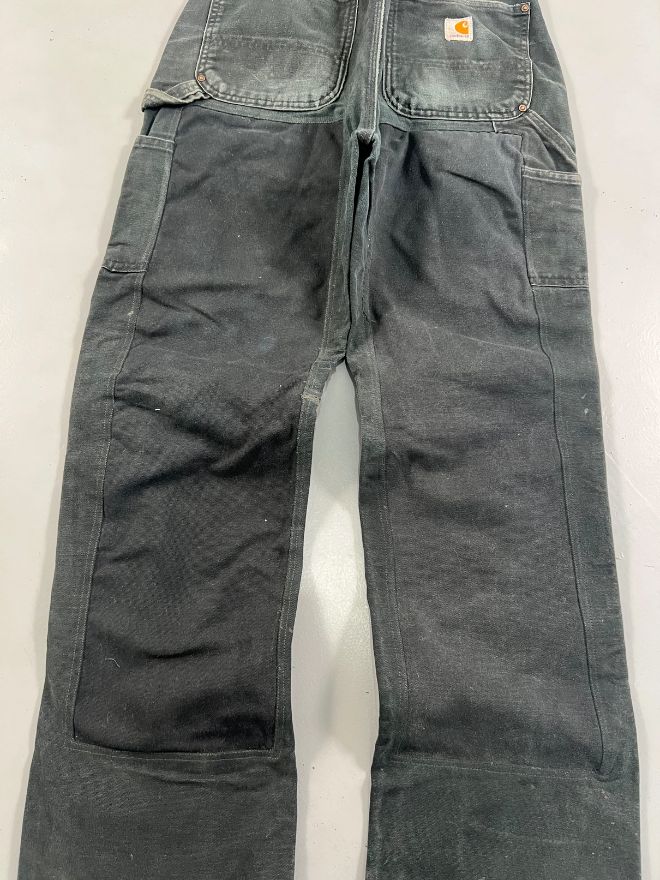 Authentic 2008 vintage Carhartt double knee work pants in classic black. Heavy-duty duck canvas with reinforced knee panels, signature hammer loop, and carpenter pockets.