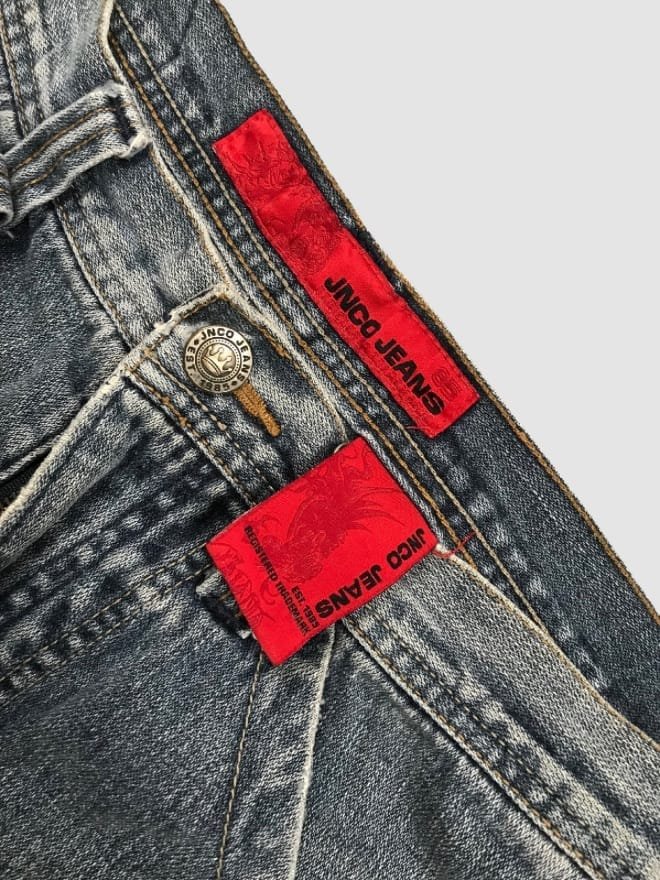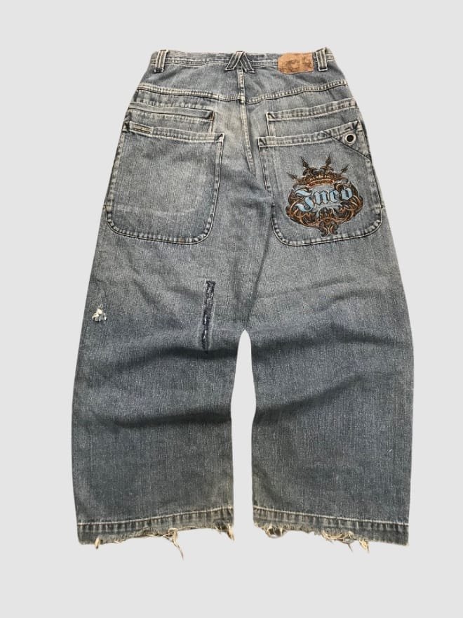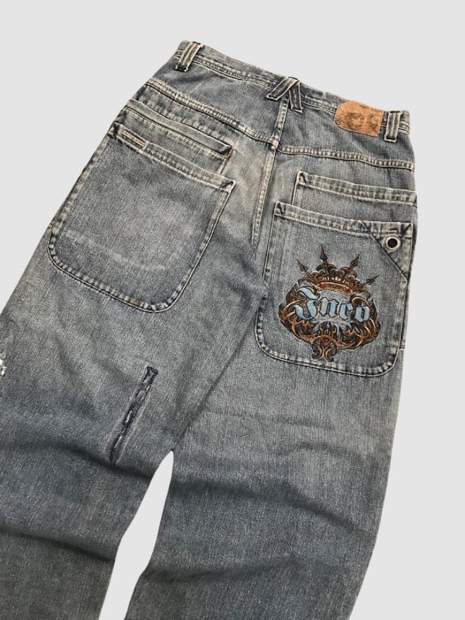 JNCO Crown Embroidered Denim jeans are a classic 90s style, known for their baggy fit and bold embroidered crown logo. 1 These jeans are a symbol of the era’s rebellious fashion and hip-hop culture. The embroidered crown adds a touch of luxury and individuality to the denim, making them a statement piece for those who dare to be different.