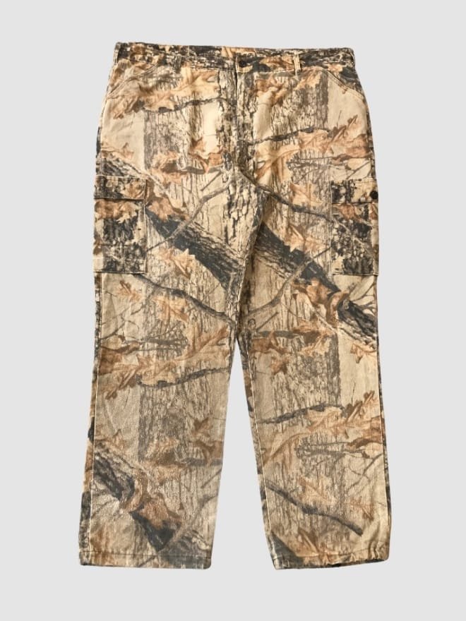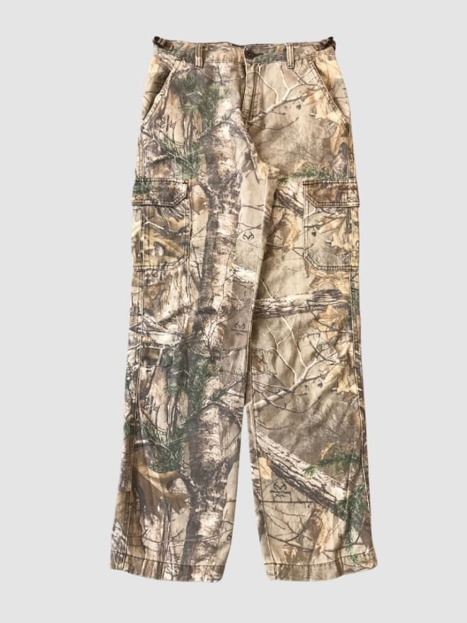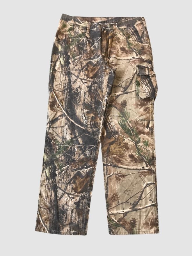 Style Mix: A variety of cargos, jeans, and possibly other camo-inspired apparel featuring the classic Realtree pattern.