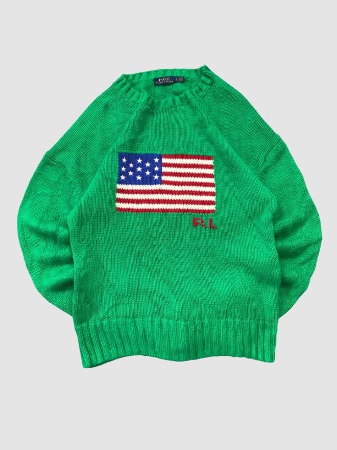 Rarity: American Flag Polo sweaters from this era are highly sought after by collectors and vintage clothing enthusiasts.1