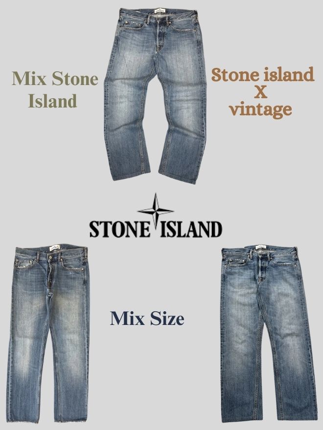 This exclusive Bundle of 3 Vintage Stone Island Denim Pants brings together rare and highly collectible pieces from Stone Island’s archive-inspired denim era. Known for its technical innovation, Italian craftsmanship, and strong presence in streetwear and sportswear culture, Stone Island remains one of the most respected brands in vintage fashion.