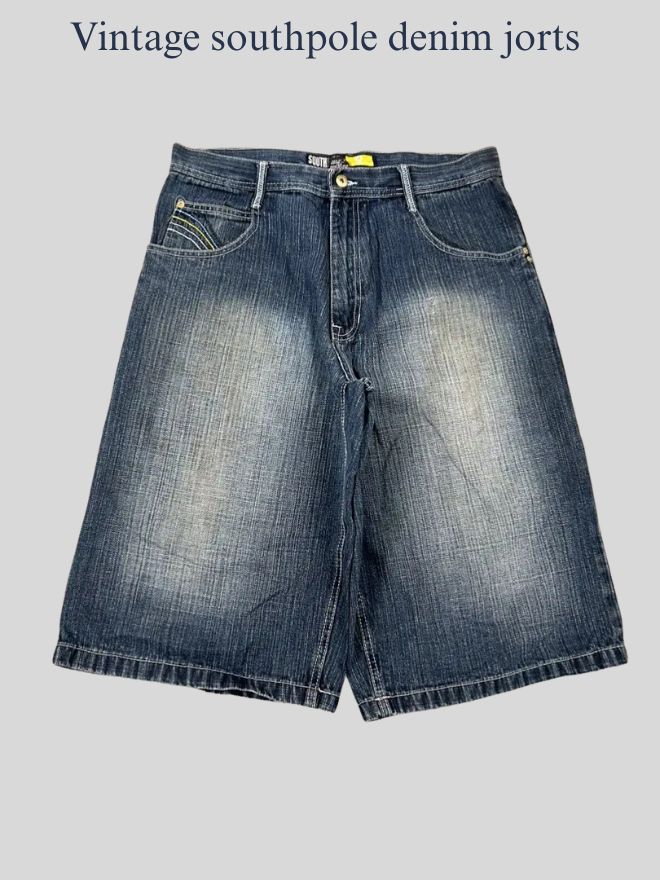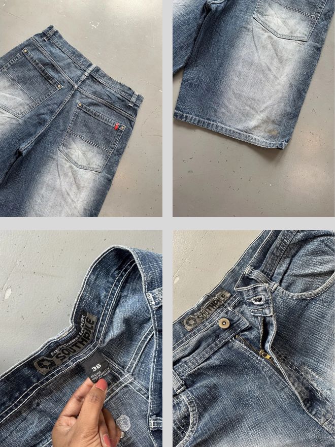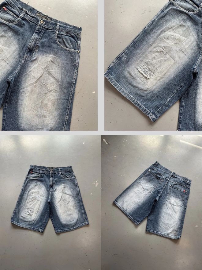 This Bundle of 4 Vintage Southpole Denim Jorts brings together iconic Y2K-era streetwear pieces inspired by skate culture and 90s–early 2000s hip-hop fashion. Southpole is widely recognized for its bold fits, oversized silhouettes, and strong influence on urban street style, making these jorts highly desirable in today’s vintage market.