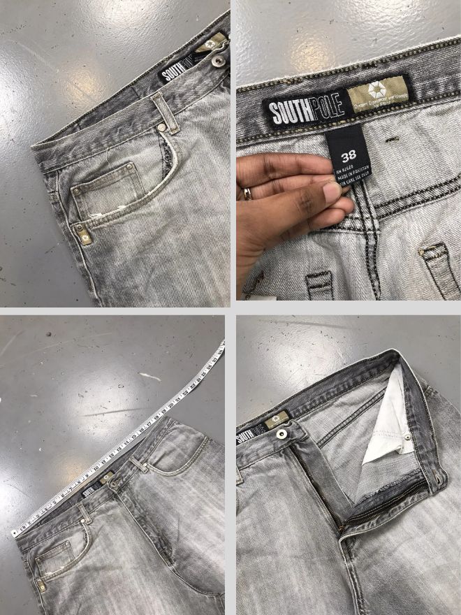 2) Vintage Southpole Skater Denim Jorts – Men’s US 38 (Gray)
