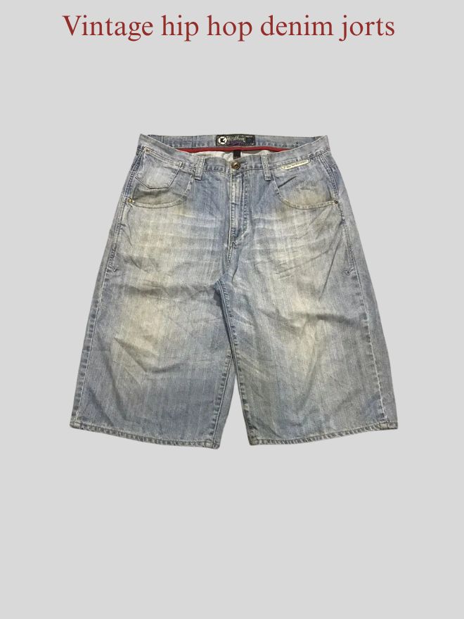 Bold hip-hop inspired jorts with extra room and strong Y2K presence.