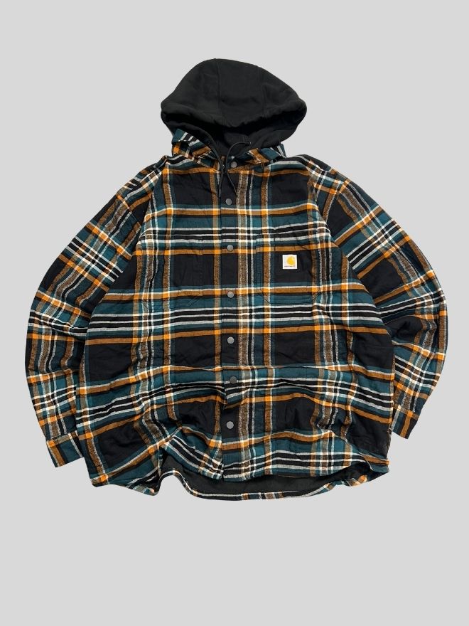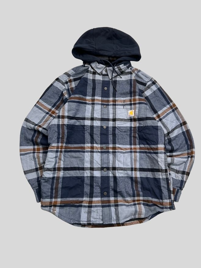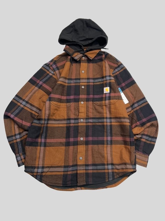 Bundle of factory leftover flannel hooded jackets, Grade A, new and never worn, sizes S to XL.