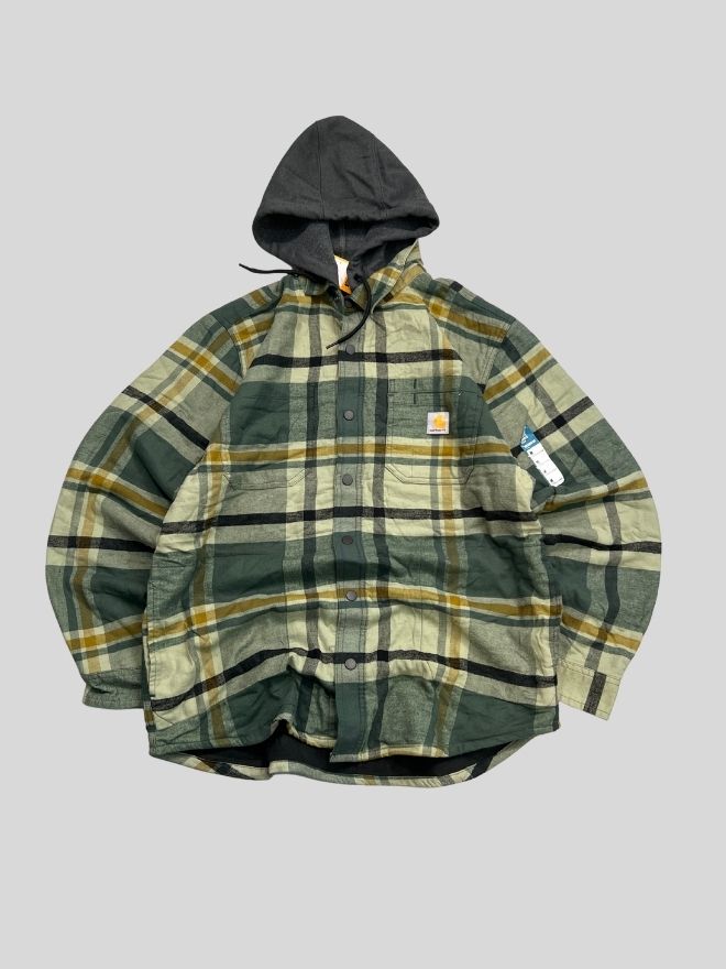 This bundle includes factory leftover flannel hooded jackets, featuring classic checked patterns with attached hoods for everyday comfort and warmth. All items are brand new and never worn, making them ideal for resale, retail stores, or personal use.