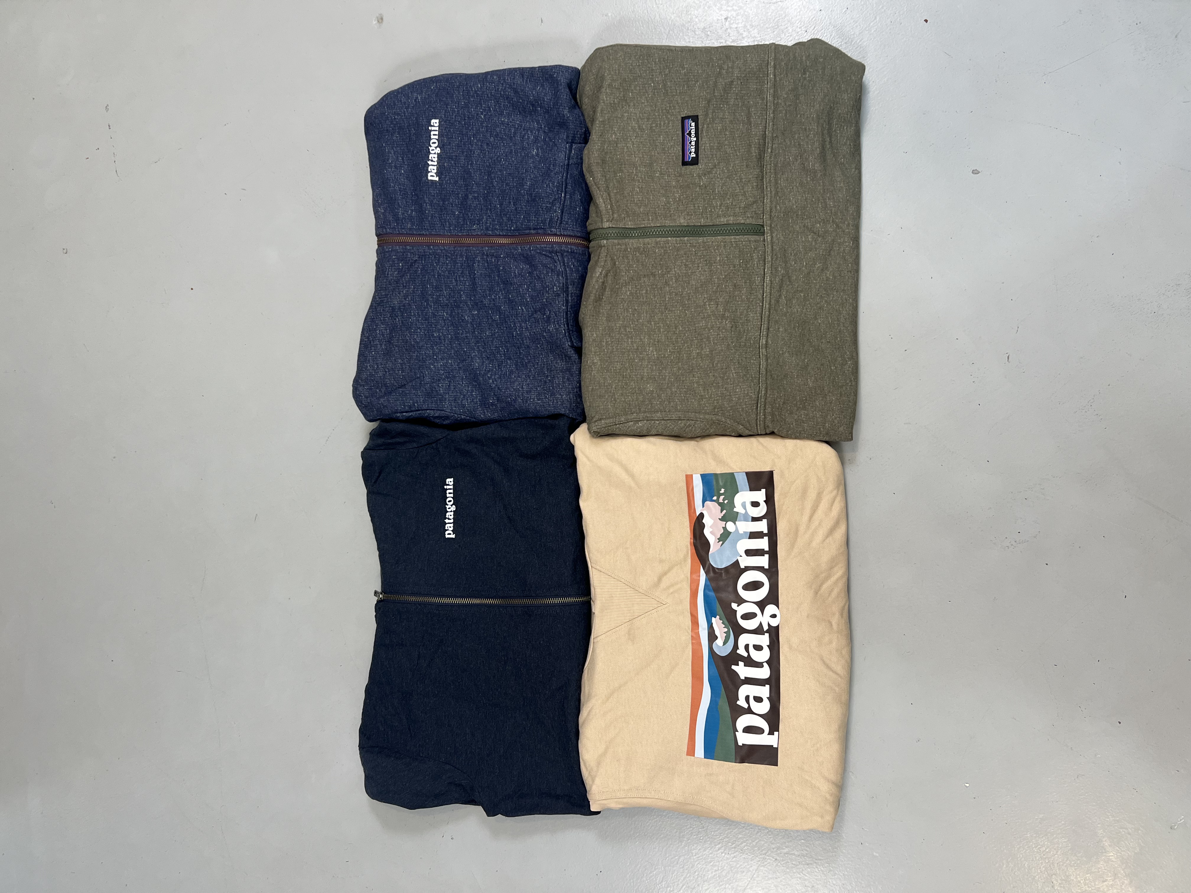 Wholesale bundle of original Patagonia jackets in mixed styles — including zipper pullovers, hoodies, half zip, full zip, and zipper hoodies. These are factory leftover Grade A items, meaning unworn condition with very minimal or no flaws. Perfect for resellers, online stores, and seasonal stock preparation.