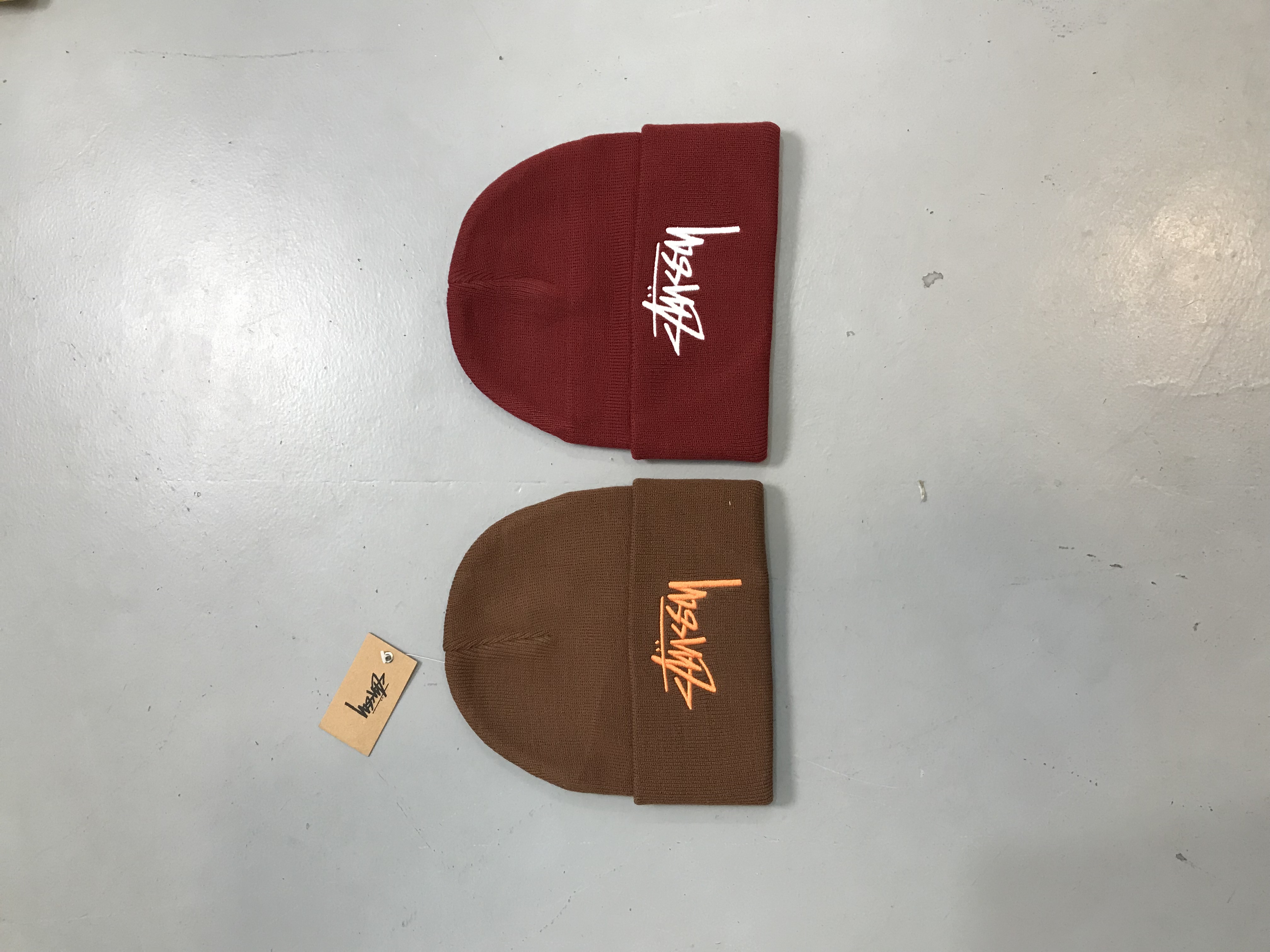 Bundle of factory leftover Stüssy Beanie caps, Grade A, new and never worn, mixed colors and styles.