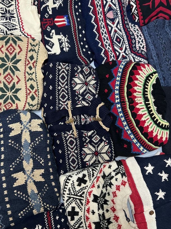 This bundle contains a premium mix of vintage Polo multicolour 3D knit sweaters, featuring bold winter patterns, textured heavy knit construction and iconic Polo streetwear styling. Every piece offers its own unique colour palette — ranging from Nordic winter knits to Americana star patterns and heritage holiday styles.