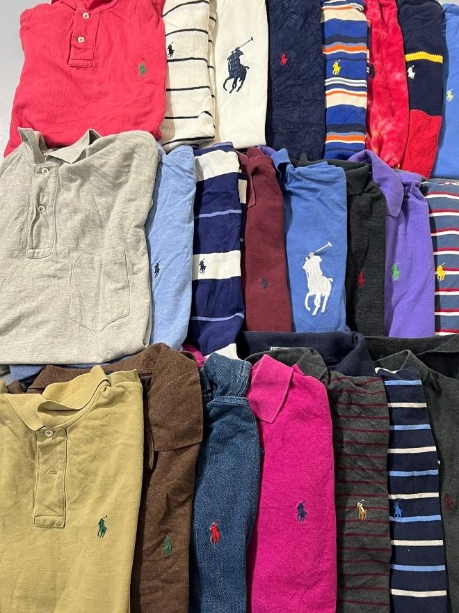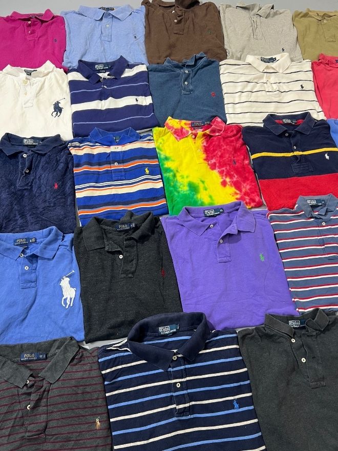 A curated mix of authentic vintage Ralph Lauren polo collar t-shirts.