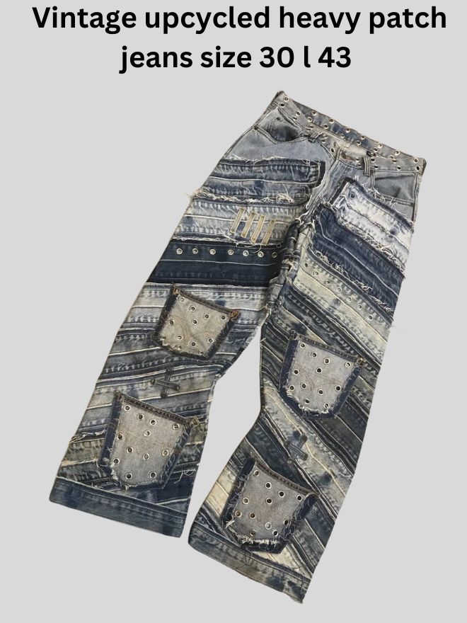 Bottoms: denim jeans, workwear pants, custom and patched jeans