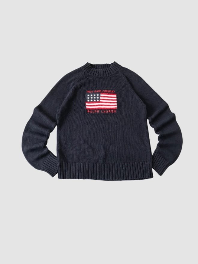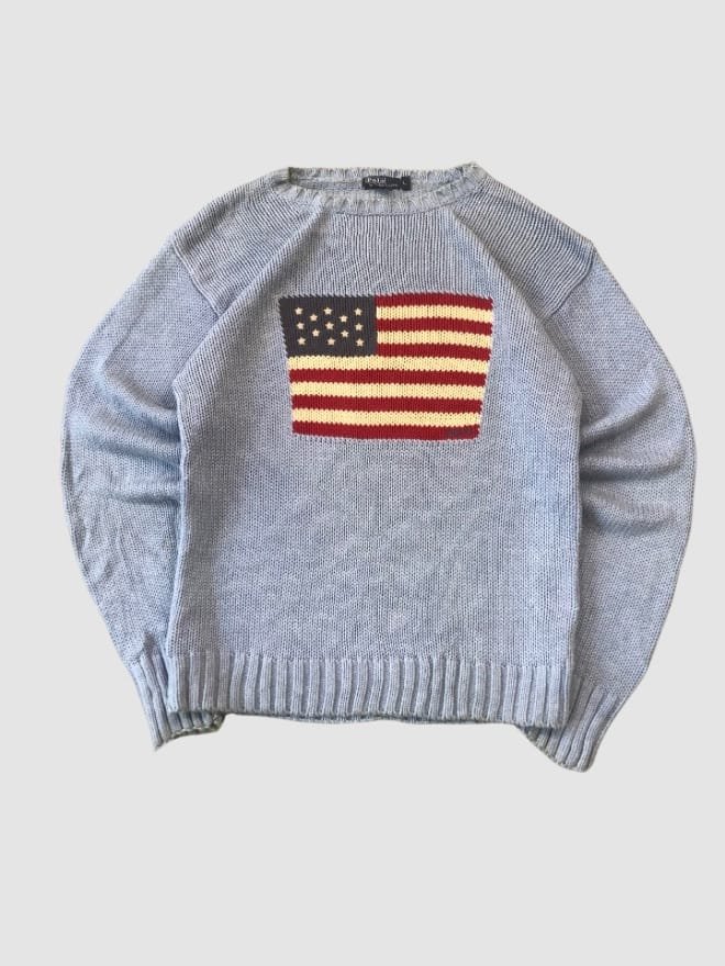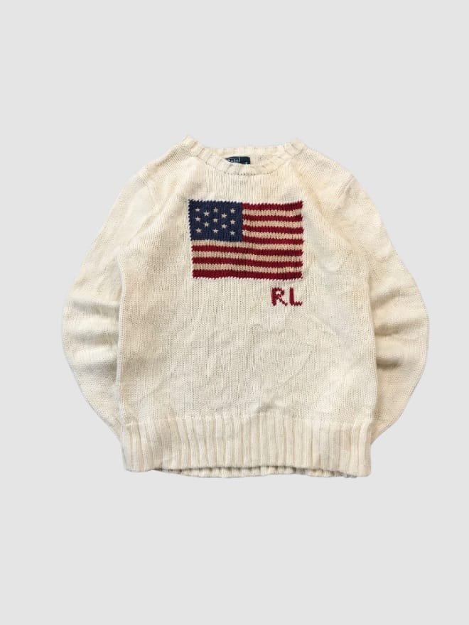 American Flag Ralph Lauren sweaters from the 90s are highly sought after by collectors, resellers, and true vintage enthusiasts.
