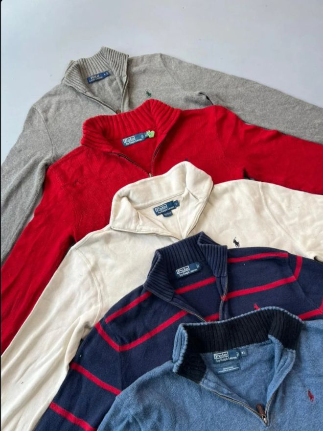 Discover a vibrant mix of authentic Polo Ralph Lauren knitwear in this AB-grade bundle, offering the full spectrum of classic colors and timeless styling. Each sweater falls within the M–XXL size range, ensuring a versatile selection suitable for collectors, resellers, and vintage lovers alike. Carefully curated and true to what you see, this bundle delivers the same iconic pieces showcased in the images.