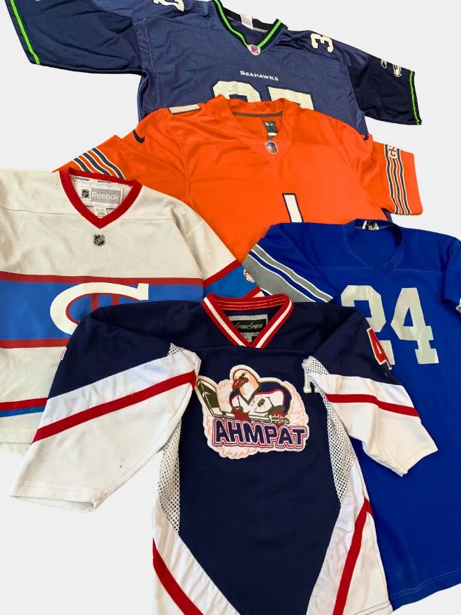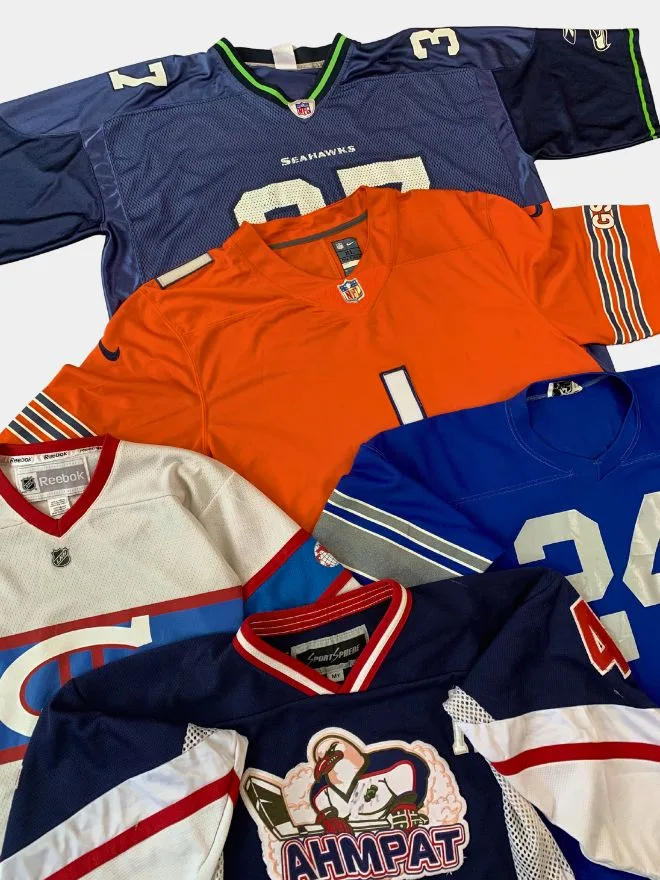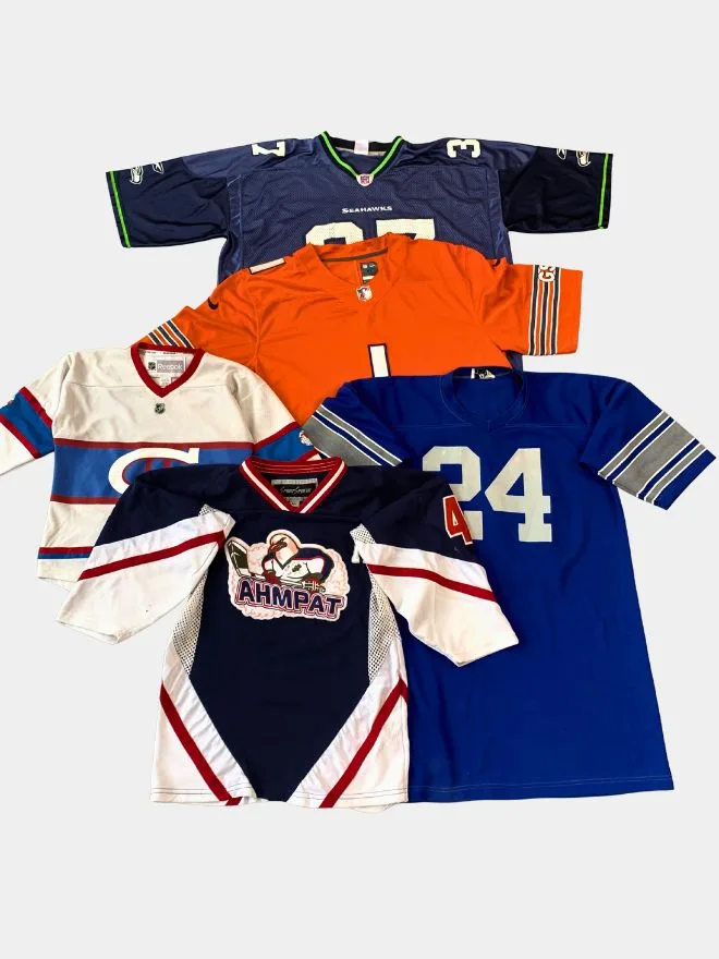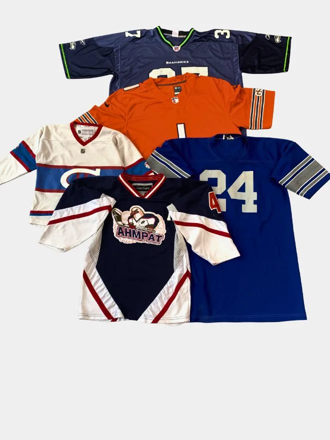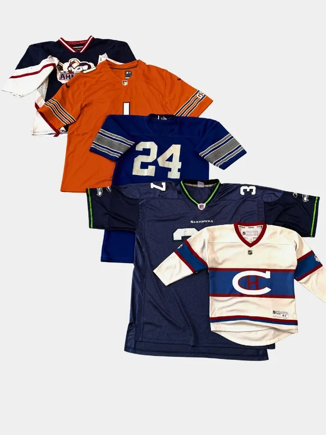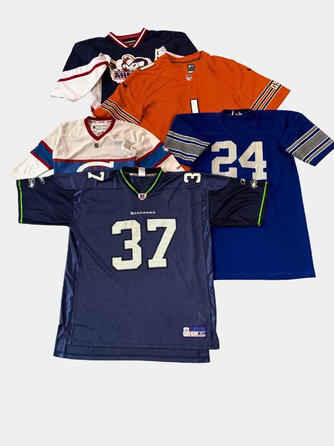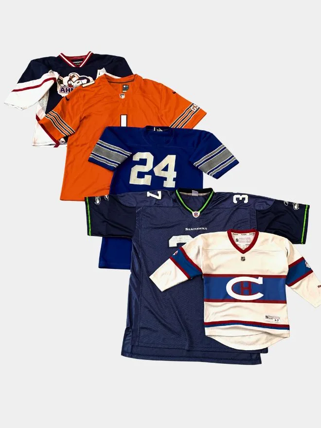 Level up your inventory with this bundle of vintage sports jerseys featuring a mix of well-known teams, bold colourways, and standout graphics. From classic NFL-style pieces to unique team designs, this bundle delivers strong streetwear appeal and resale value.