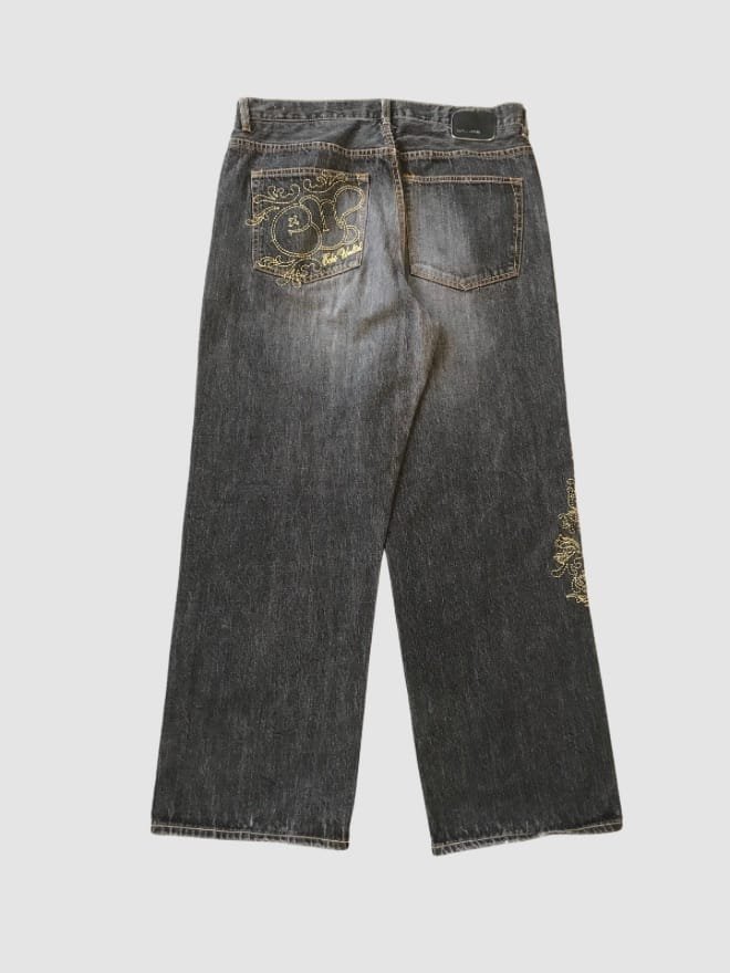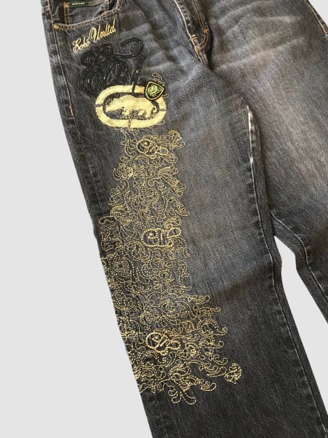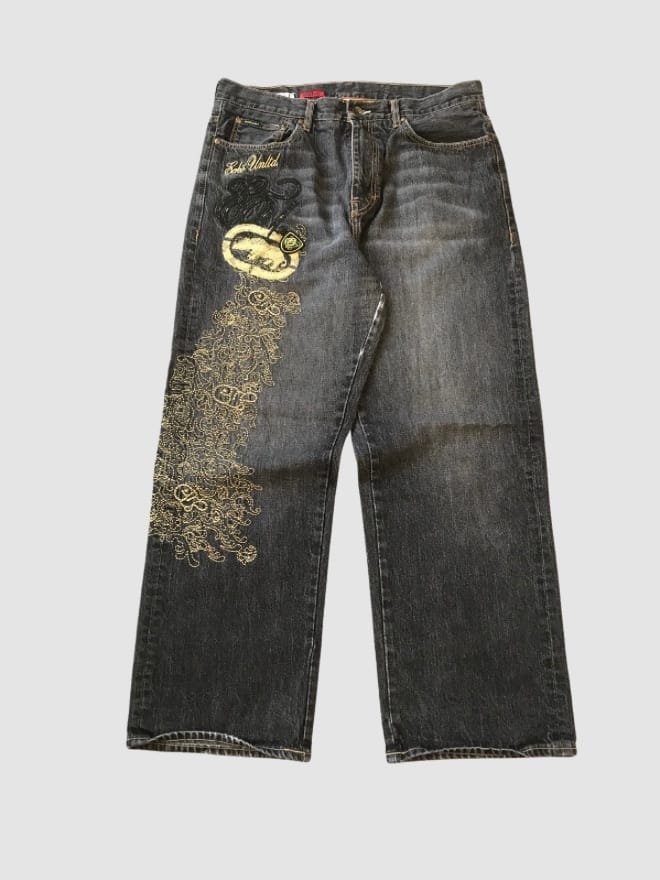 “This vintage Ecko Unltd. denim combo embodies the iconic Y2K streetwear style, a true throwback to the early 2000s.”