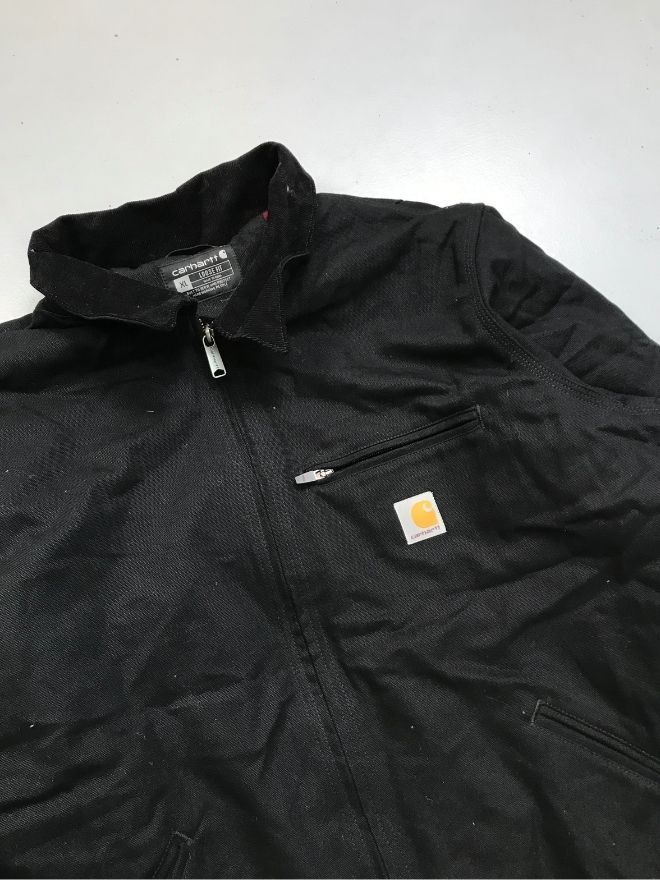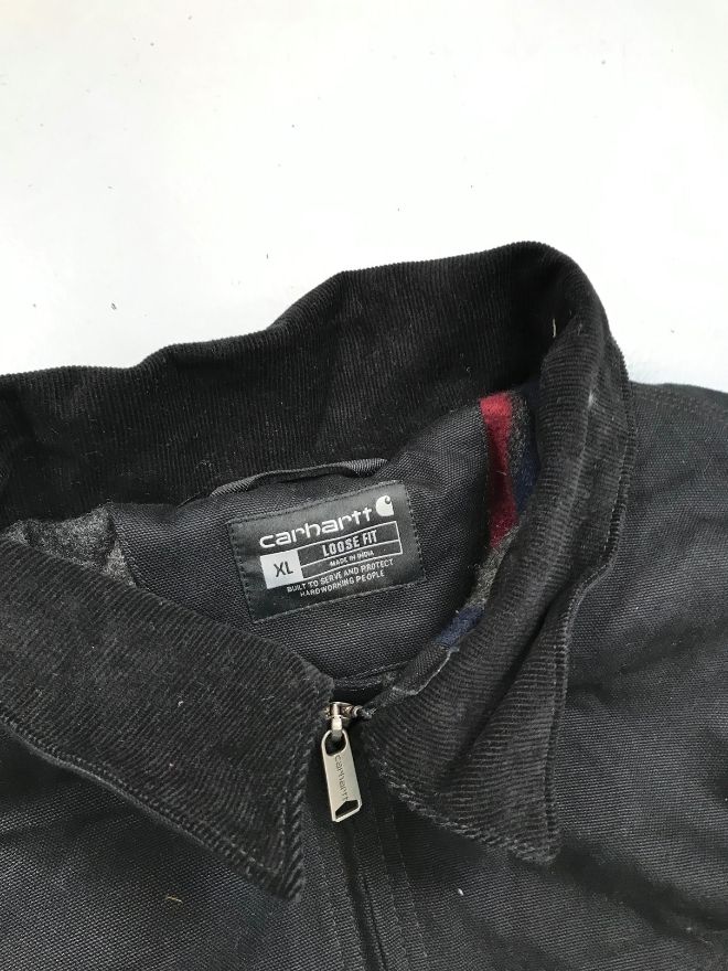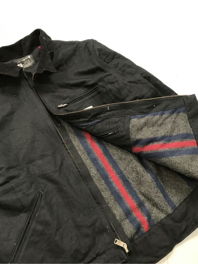Factory leftover Vintage Carhartt Blanket-Lined Detroit Jacket in black.