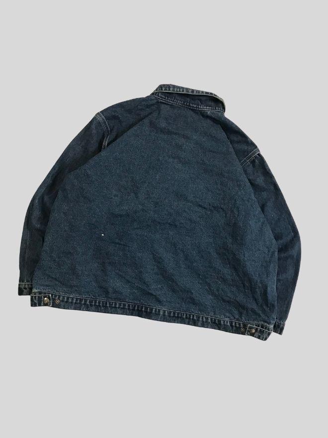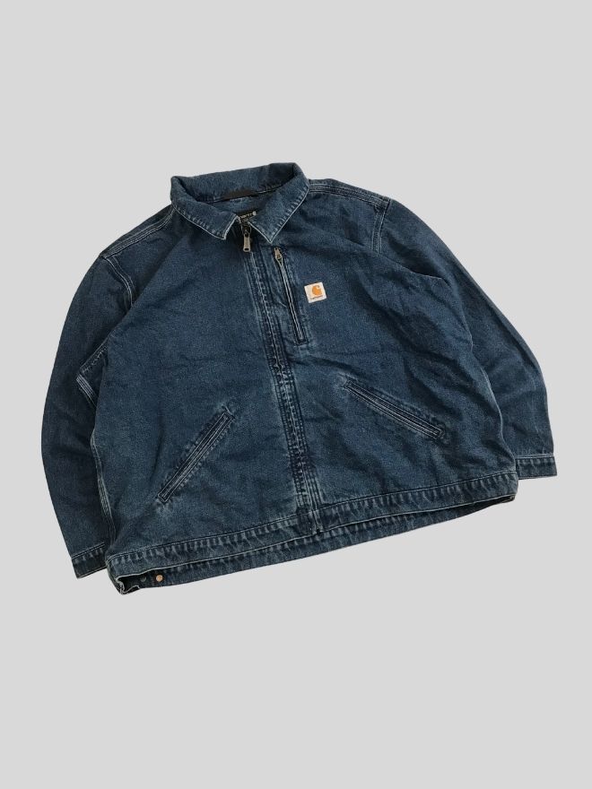 A factory leftover vintage Carhartt Detroit Jacket in classic blue. This piece carries the iconic rugged canvas construction Carhartt is known for — built for durability, workwear authenticity and street-style appeal. The jacket comes in a men’s size XL, offering a relaxed and boxy fit suitable for layering.