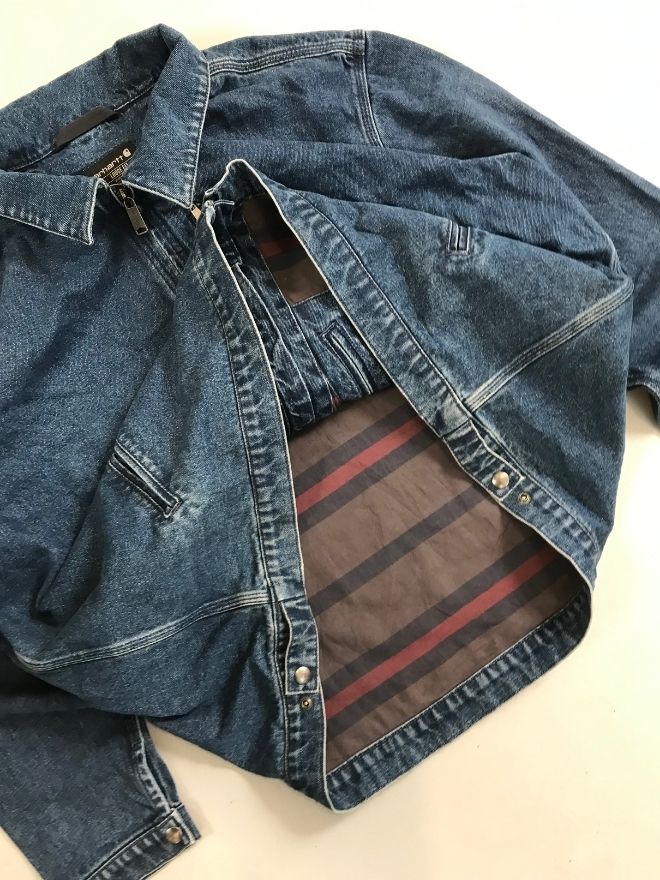 All pieces are carefully sourced and inspected. This is an original Carhartt factory leftover jacket, not a reproduction.