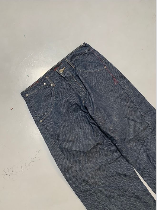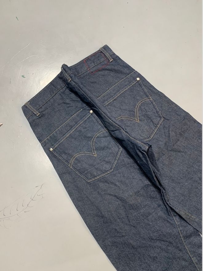 This pair is perfectly wearable and comfortable, showing only minor dusty stains from storage or age. A thorough wash or professional dry cleaning should refresh them easily. No major structural issues — solid everyday vintage denim.