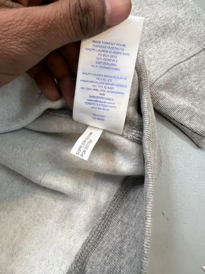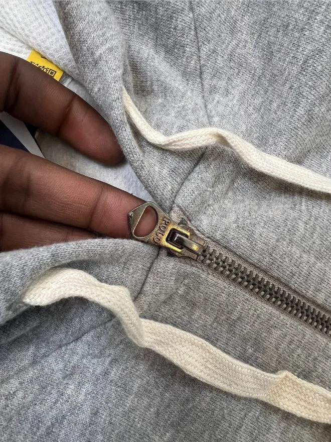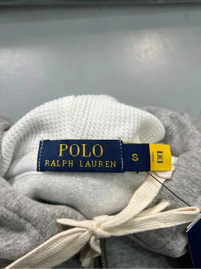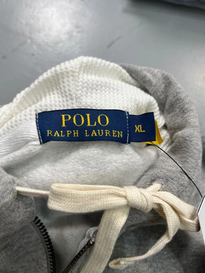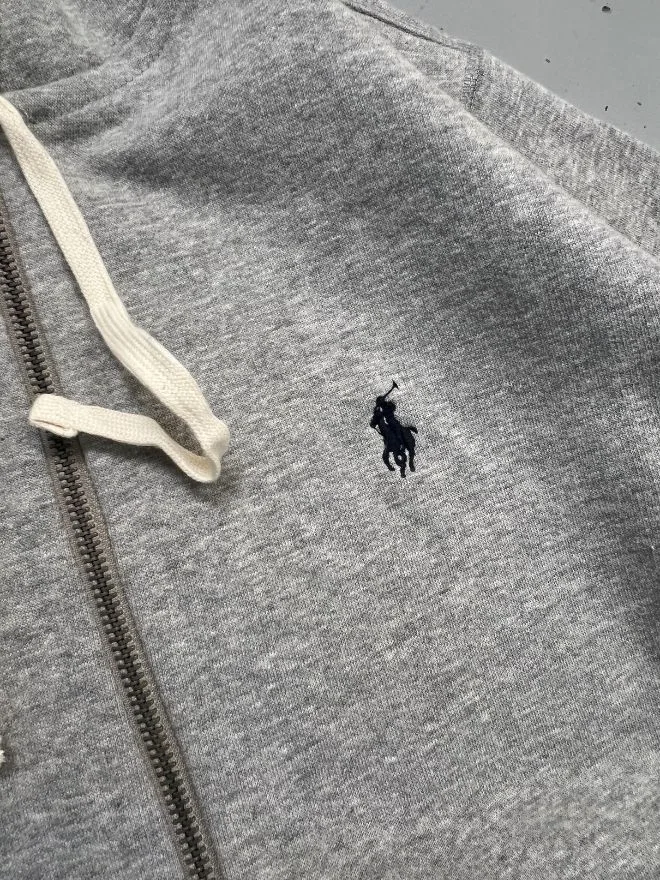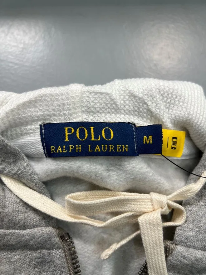 Original Polo Ralph Lauren full-zip jacket in gray, deadstock condition (new, never worn). Premium quality with sizes available in Small, Medium, and Large.