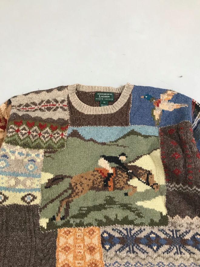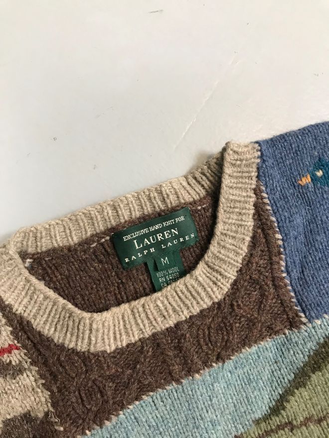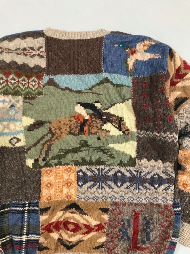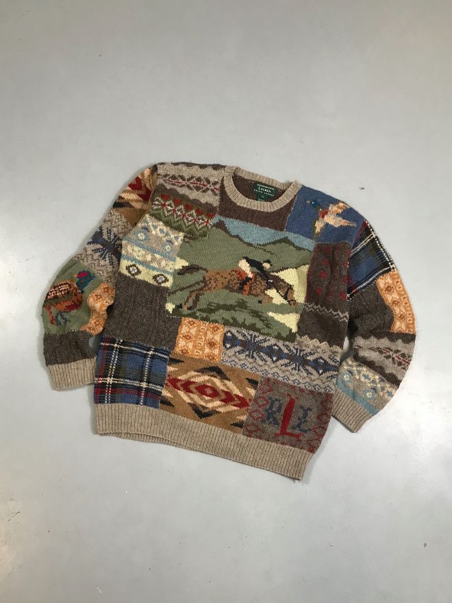 Vintage Polo Ralph Lauren Knit Sweater in a bold multi-color pattern — a perfect collectible for vintage Polo lovers.