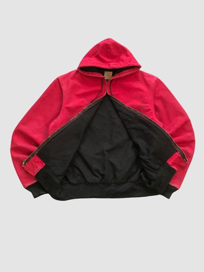 The **Vintage Carhartt Active Jacket** is a rugged, timeless piece designed for durability and warmth. Crafted from heavy-duty cotton duck fabric with a soft, insulated lining, this jacket offers superior protection against the elements. Featuring a cozy hood, ribbed cuffs, and a durable zipper, it combines Carhartt’s iconic workwear style with comfort, making it perfect for outdoor activities or everyday wear. With its vintage charm and reliable construction, this jacket is a must-have for those who appreciate classic, functional fashion.
