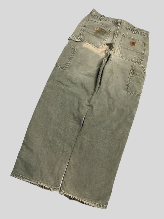 The MOS green colorway gives these pants a rugged, distinctive look that works perfectly in both streetwear and traditional workwear styling. As a vintage item, the condition is exactly as shown in the photos, reflecting natural wear and authentic character that collectors appreciate.