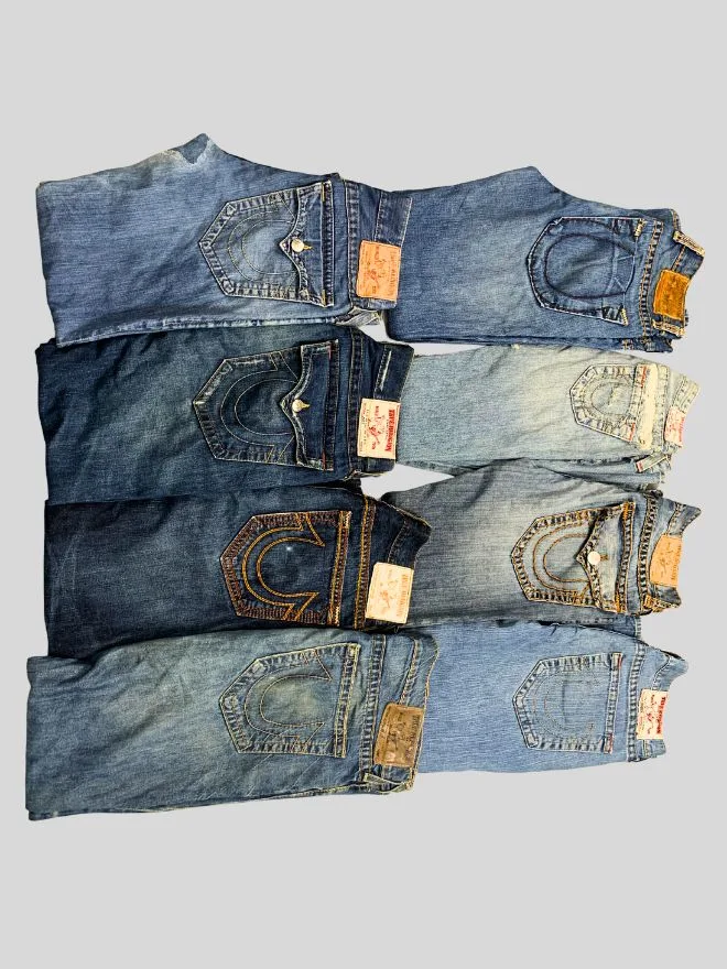 This bundle features a curated mix of TR bootcut jeans, ideal for resellers and vintage stores. The lot includes 80% Grade A pieces (clean condition with minimal to no wear) and 20% Grade B pieces (may show light signs of use such as minor fading or wear).