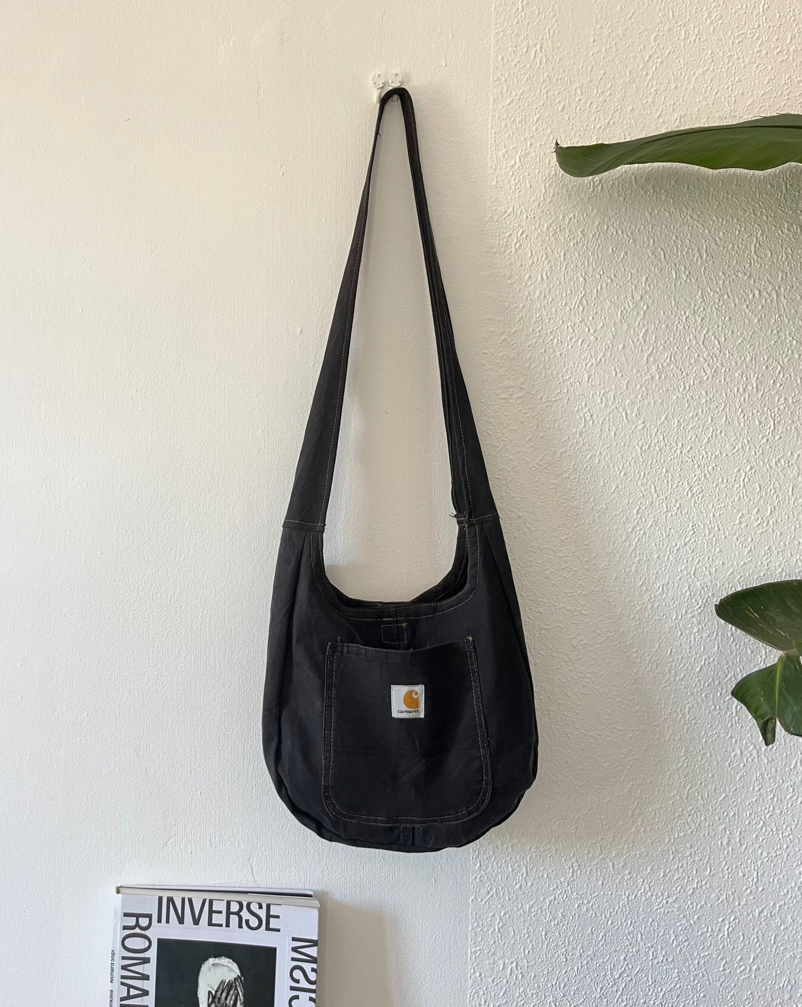 This one-of-a-kind sling bag is made from authentic vintage Carhartt jeans. Because each pair is unique, the color and style of your bag may vary slightly from the image. This bag is perfect for anyone who loves vintage style and sustainable fashion.
