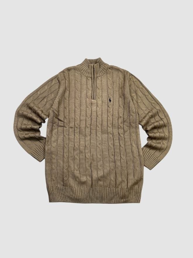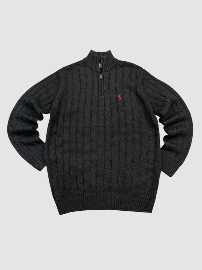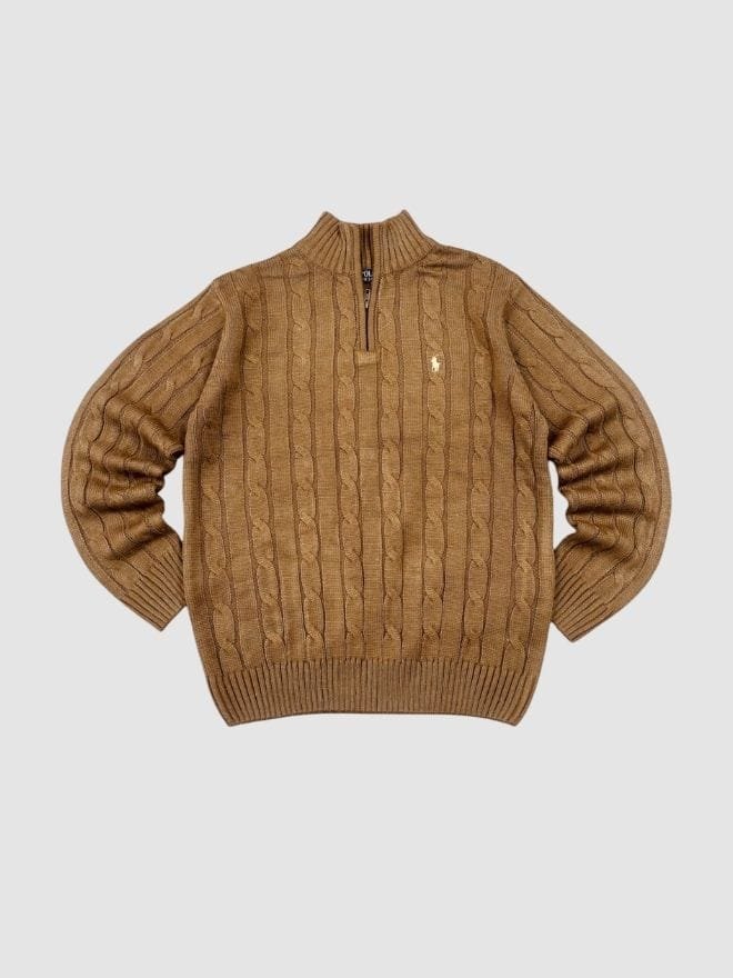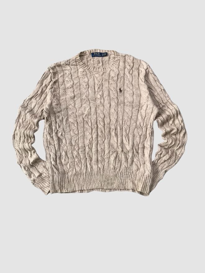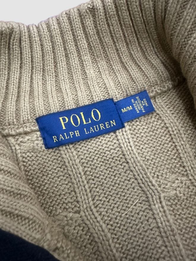 This bundle includes 43 pieces of premium Polo sweaters, featuring a mix of vintage rags and deadstock. Styles include cable-knit and quarter-zip designs, with sizes ranging from S to L. Sample images with tags are included in the image slide for reference.