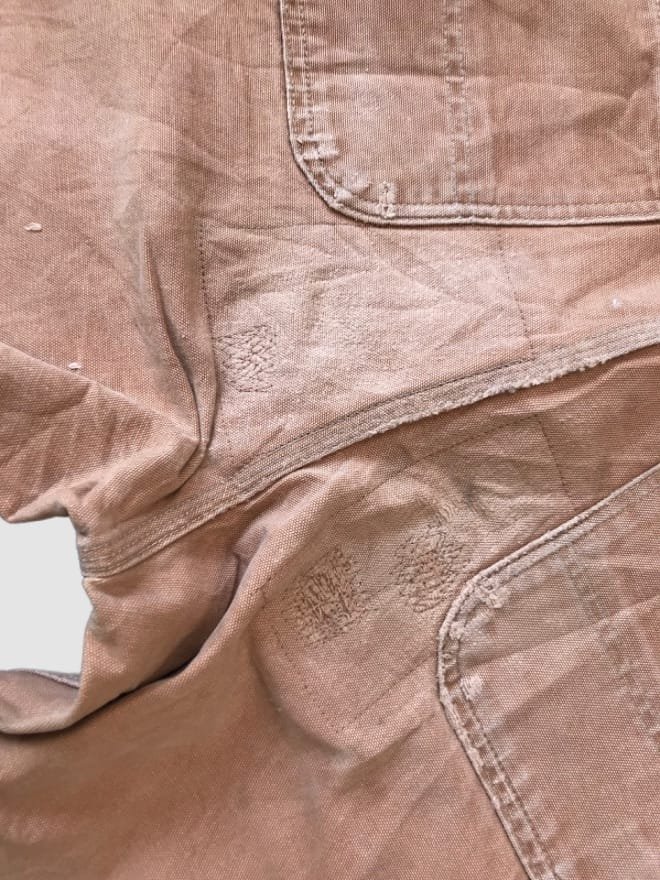 Vintage Charm: Worn-in patina, faded colors, and authentic details contribute to the pants’ vintage appeal.