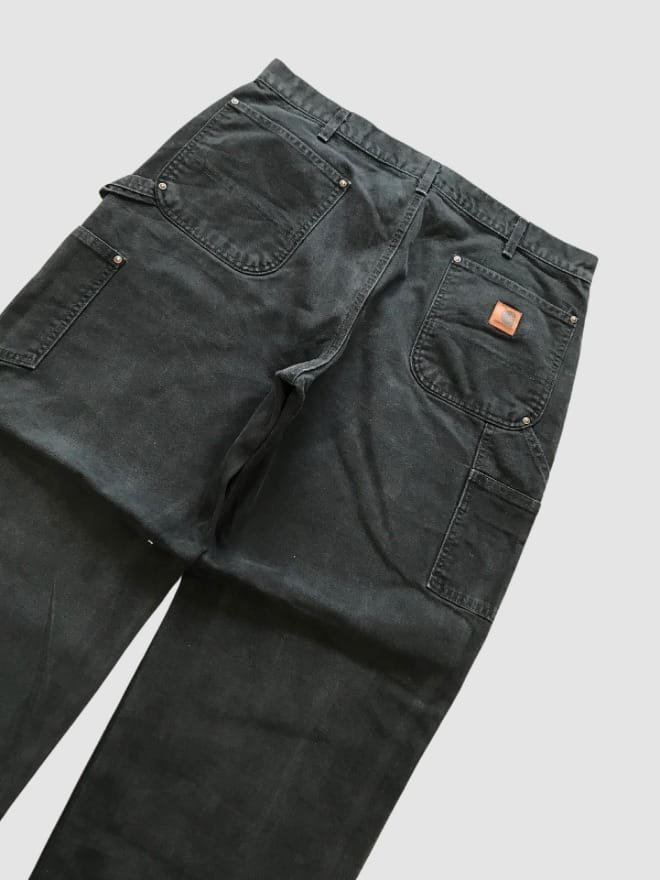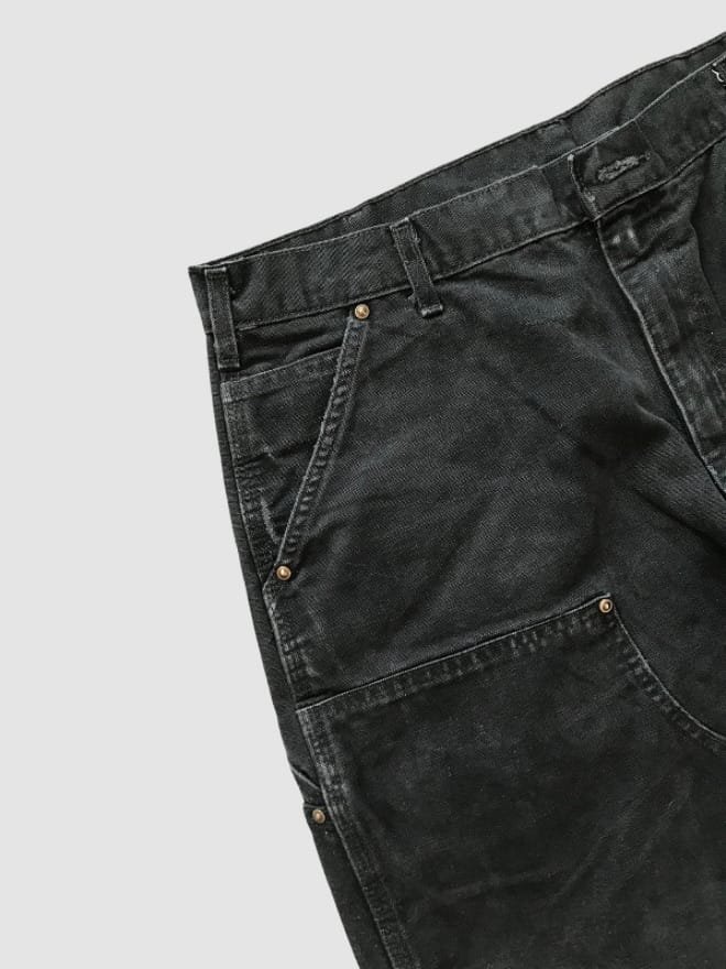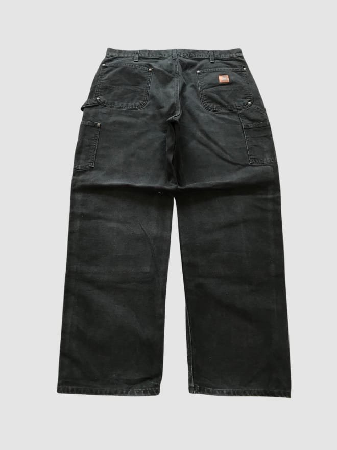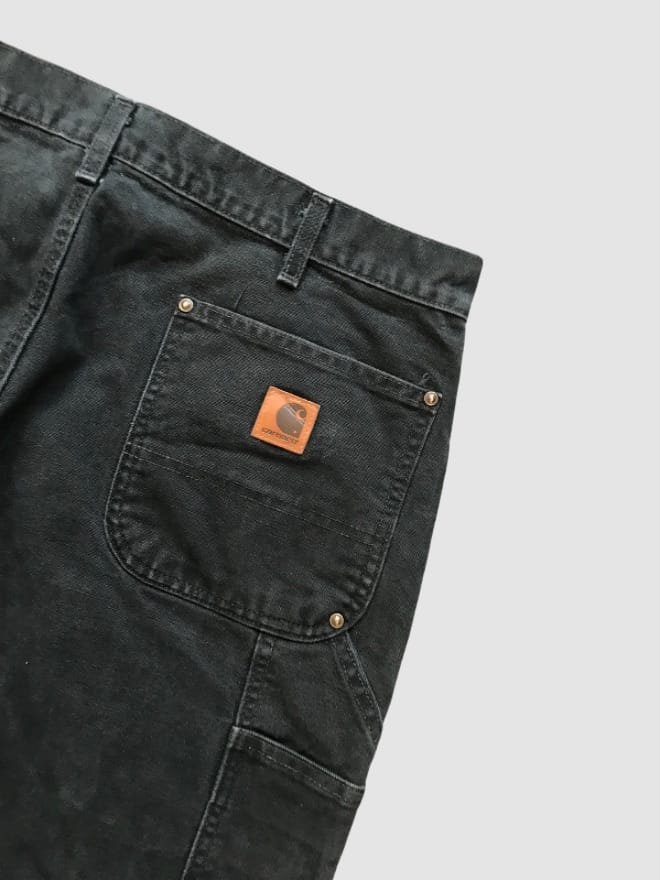 Vintage Carhartt B136 BLK Double Knee Carpenter Denim – Rugged Construction, Timeless Design. This pair of vintage Carhartt B136 BLK double knee carpenter jeans embodies Carhartt’s commitment to quality and rugged construction. The iconic double knee reinforcement provides extra durability, making these jeans perfect for work or everyday wear. [Mention any specific details like the wash, any unique wear or distressing,