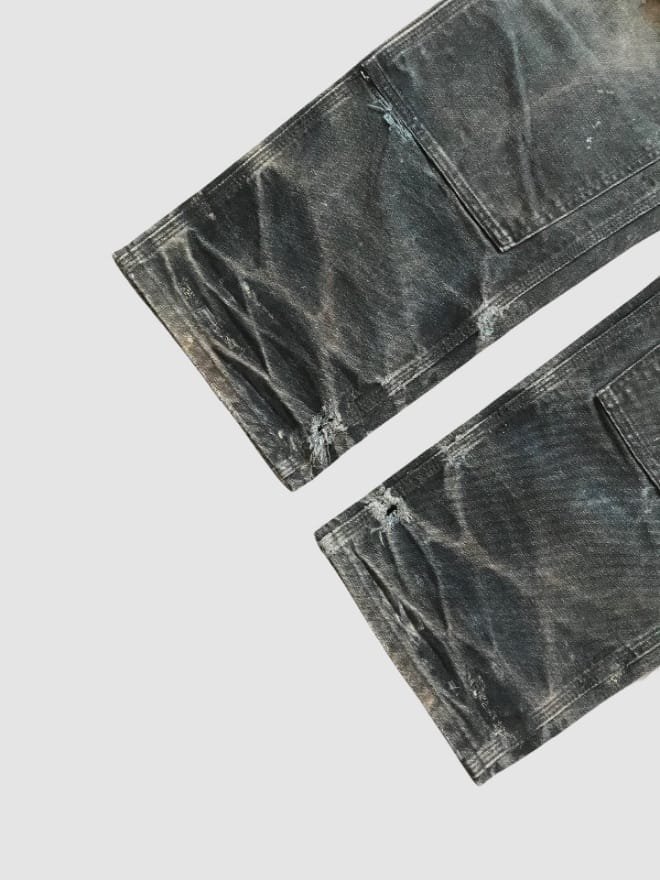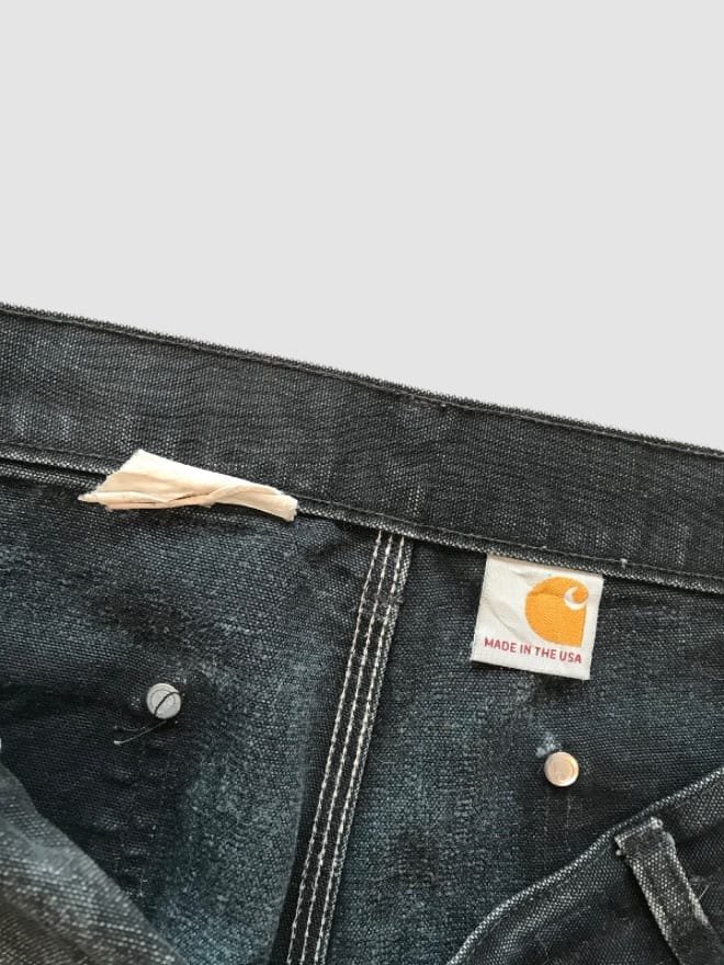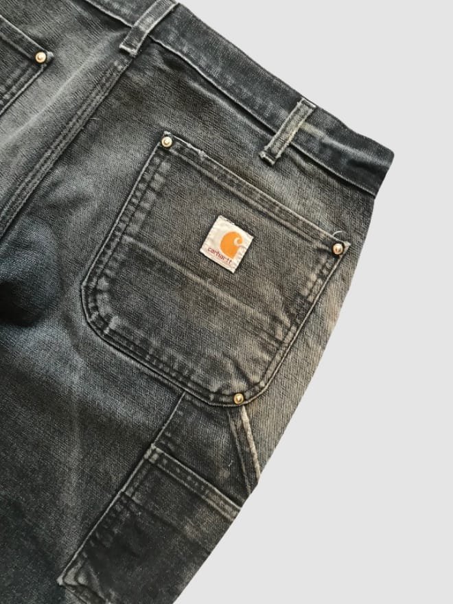 Vintage Carhartt B136 BLK Double Knee Carpenter Denim – Rugged Construction, Timeless Design. This pair of vintage Carhartt B136 BLK double knee carpenter jeans embodies Carhartt’s commitment to quality and rugged construction. The iconic double knee reinforcement provides extra durability, making these jeans perfect for work or everyday wear. [Mention any specific details like the wash, any unique wear or distressing,