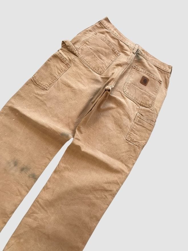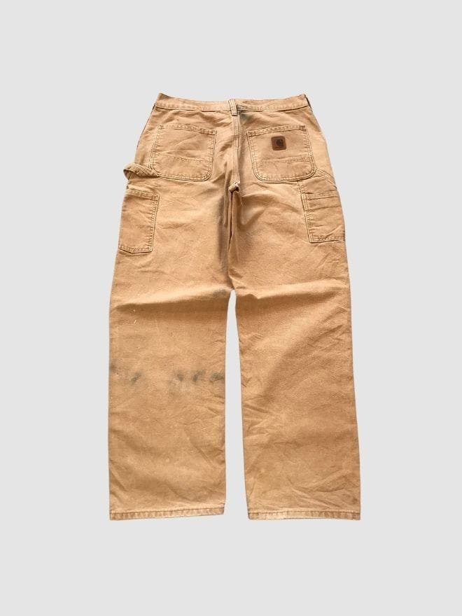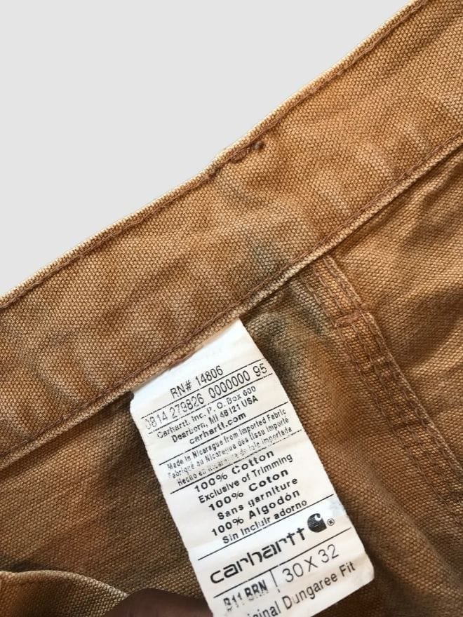 Vintage Carhartt B136 BRN Double Knee Carpenter Denim – The Classic Black Work Pant. These black Carhartt B01 double knee carpenter jeans are a staple of workwear style. The double knee reinforcement offers superior protection, while the black color adds a touch of versatility.