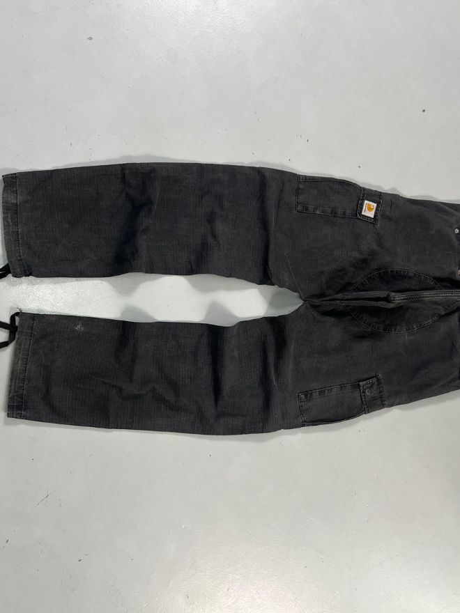 Authentic vintage Carhartt baggy cargo-denim pants in a relaxed fit, size US 34 (EU 50). Heavy cotton denim with utility pockets and relaxed streetwear silhouette — perfect for workwear lovers and vintage collectors.