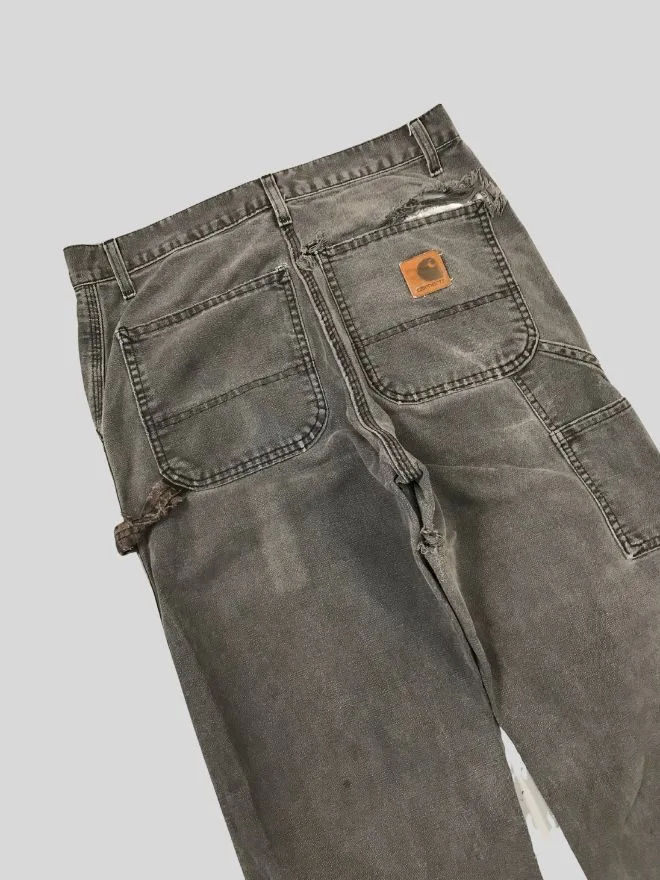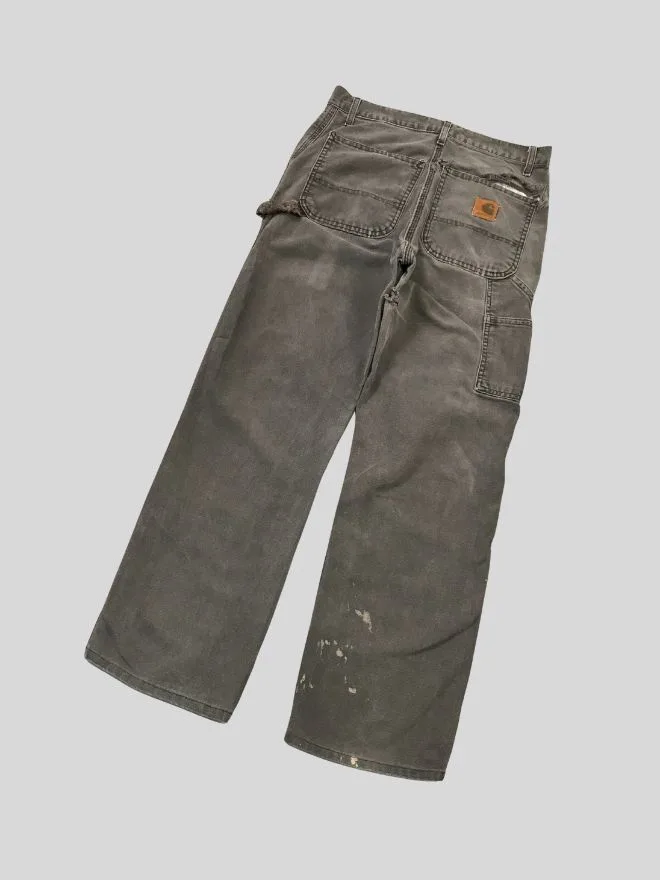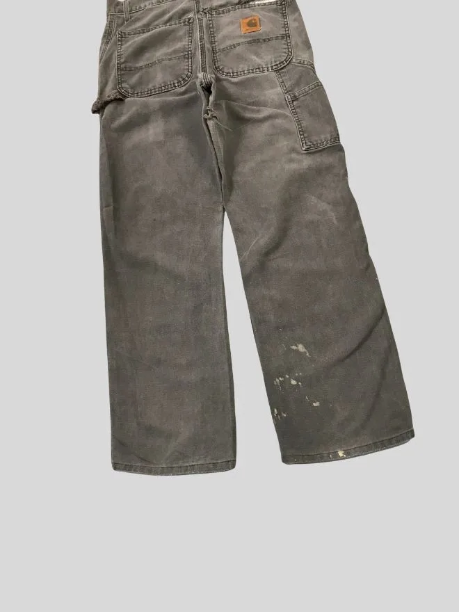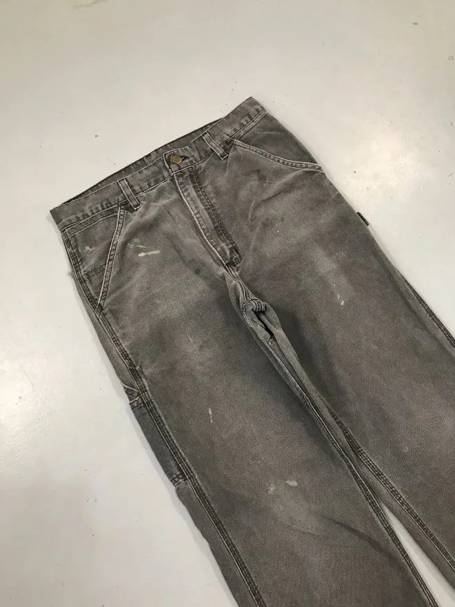 Upgrade your streetwear and workwear collection with this authentic vintage Carhartt painted carpenter denim. Designed for durability and style, these jeans feature classic carpenter detailing with unique paint drop marks that give them a one-of-a-kind, worn-in character.