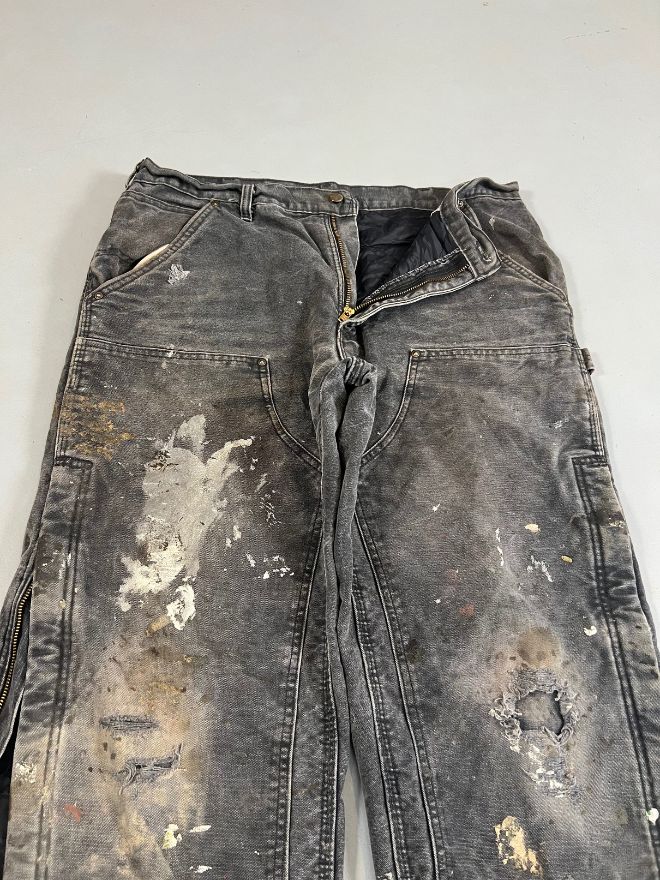 Step into real workwear heritage with this Vintage Carhartt Quilted Lined Double Knee Carpenter Denim. Built for durability and warmth, this pair features reinforced double–knee panels, full carpenter pocket layout with hammer loop, and quilted lining to keep the interior insulated.