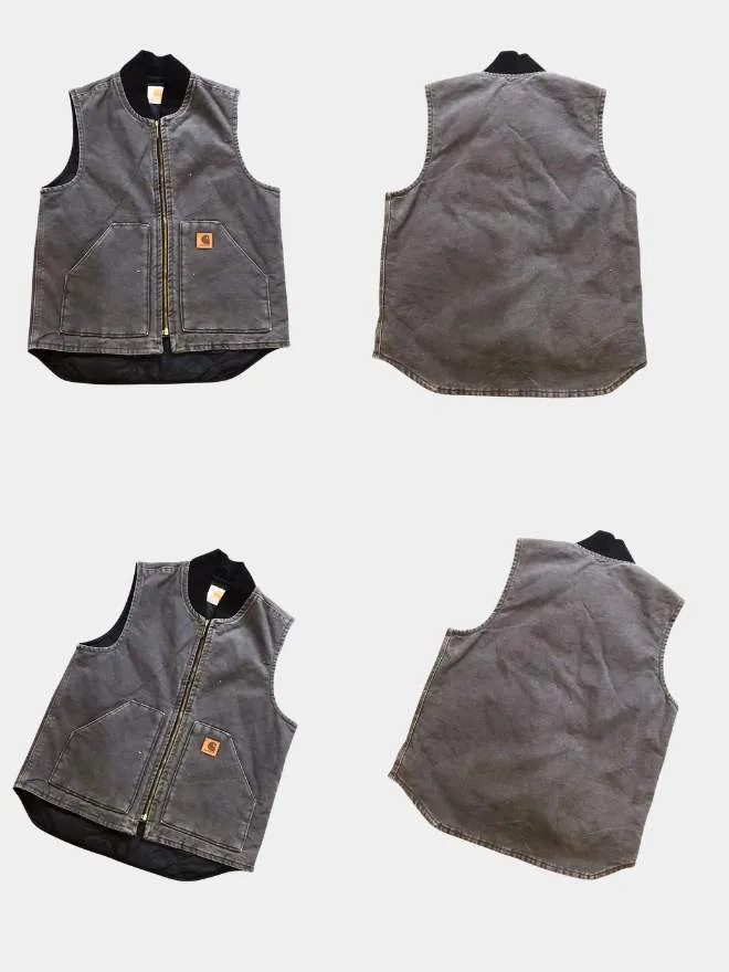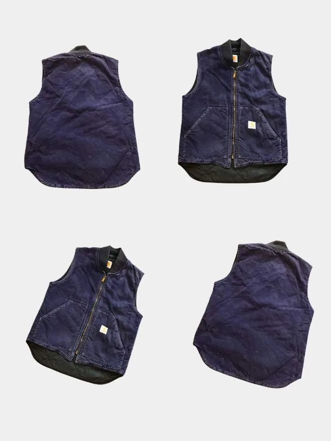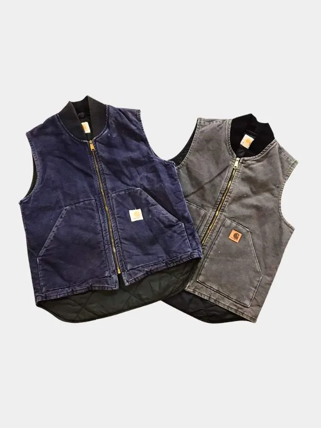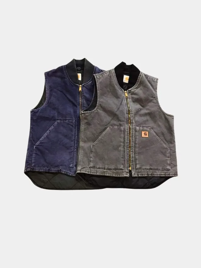 Premium vintage Carhartt vest bundle featuring two classic pieces in blue and grey. Comfortable, durable, and perfect for everyday workwear or street style.