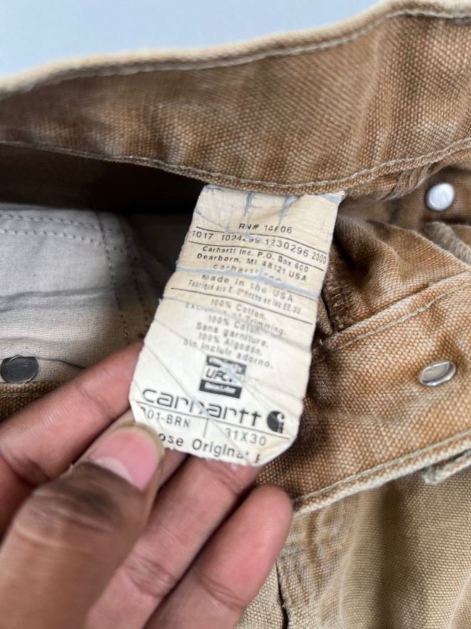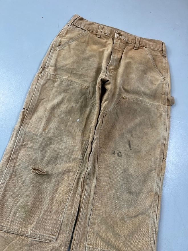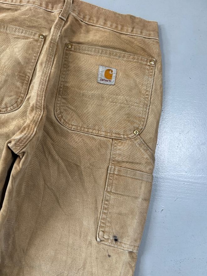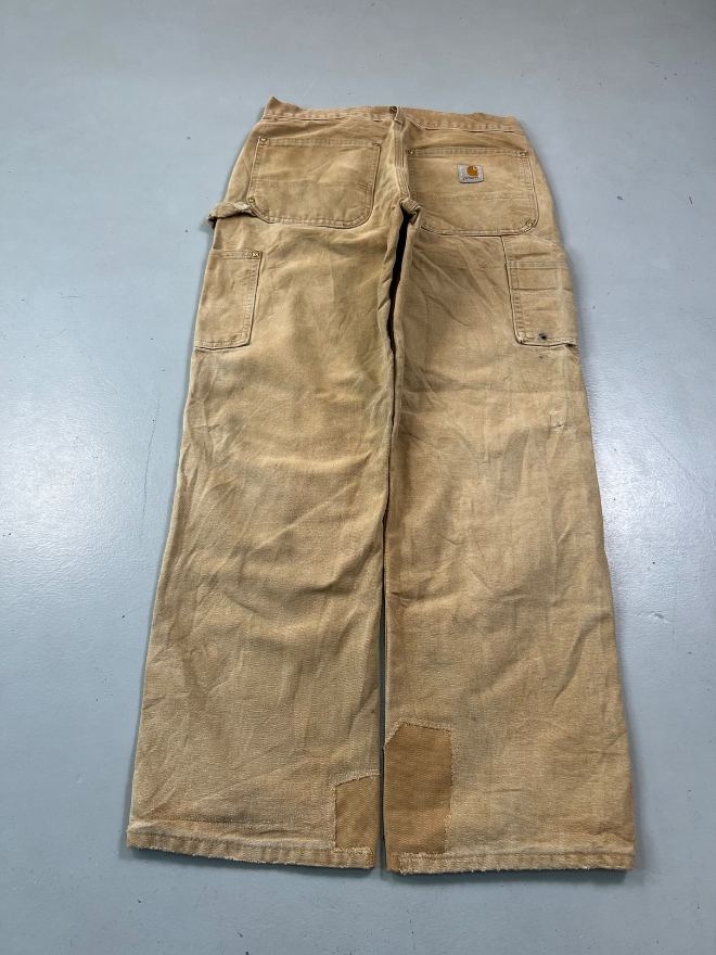 Original vintage Carhartt B195 tan double-knee work pants. Size 31. Rugged, durable, and perfect for streetwear or workwear styling. Used condition as shown. Measurements included below.