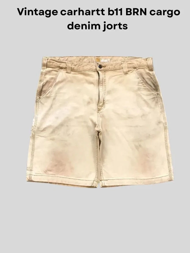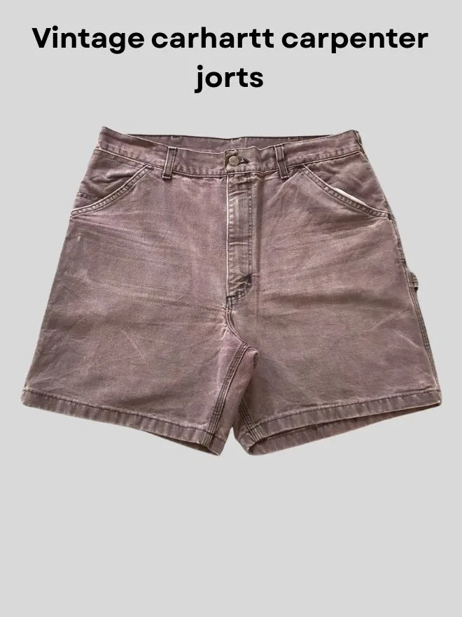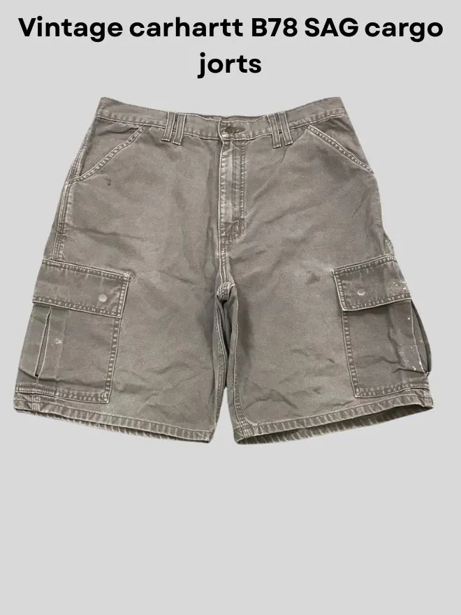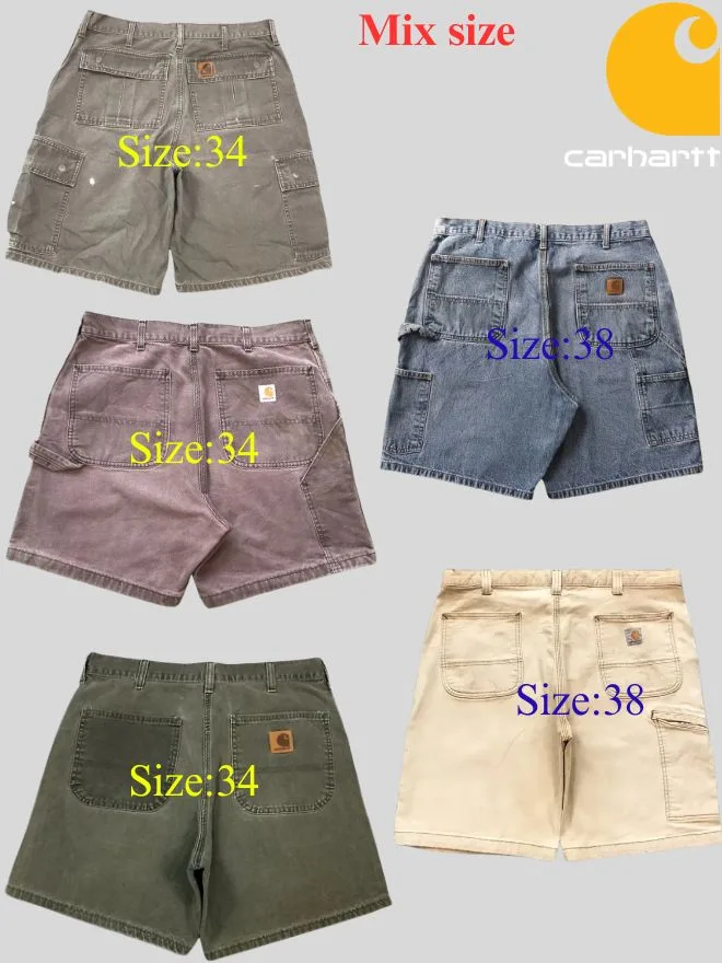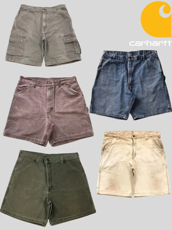 Authentic vintage Carhartt jorts bundle featuring durable workwear fabrics in cargo and denim styles. Grade AB condition with natural fade and wear. Limited 5 pieces only.