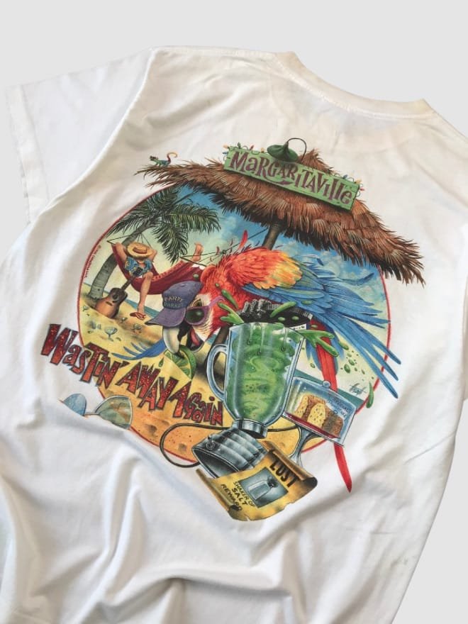 “Escape to the sun-soaked shores of vintage nostalgia with this authentic “Caribbean I Blew Out My Flip Flop” graphic single stitch tee. This shirt is a perfect slice of 90s humor, combining a playful beach theme with the coveted vintage aesthetic.