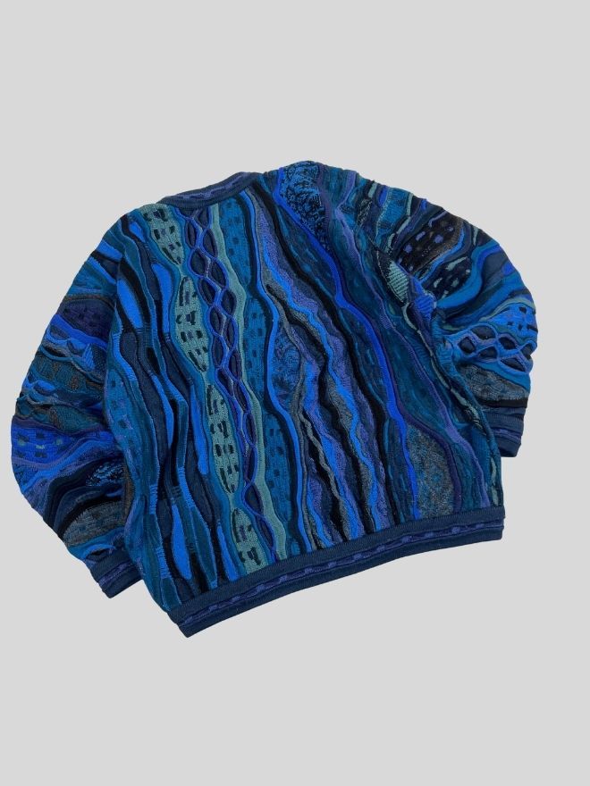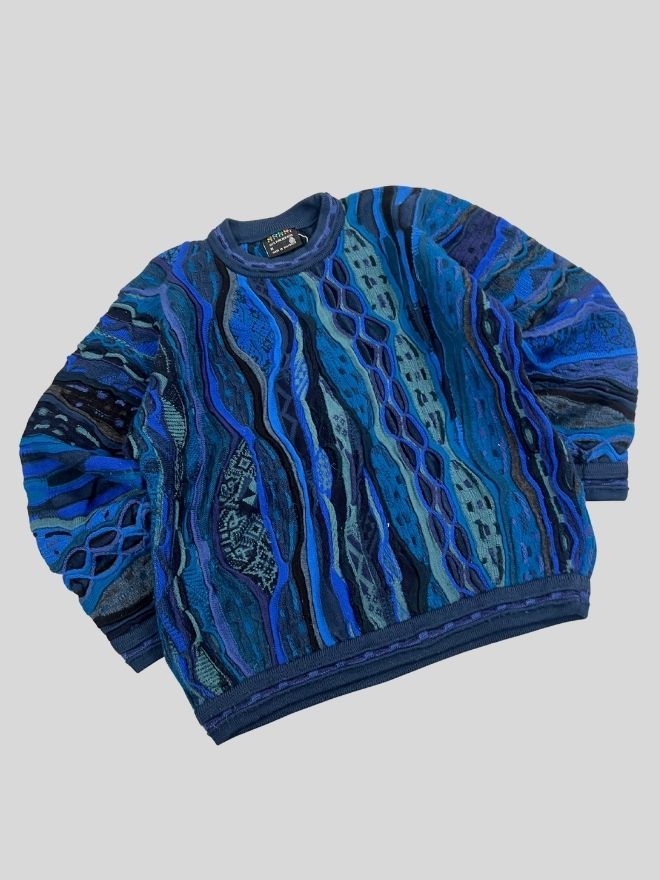 This item is guaranteed to be a genuine vintage Coogi knit with original texture, style, and construction characteristics.