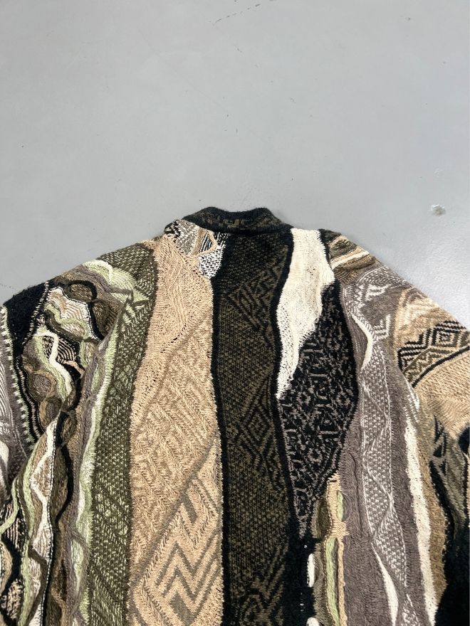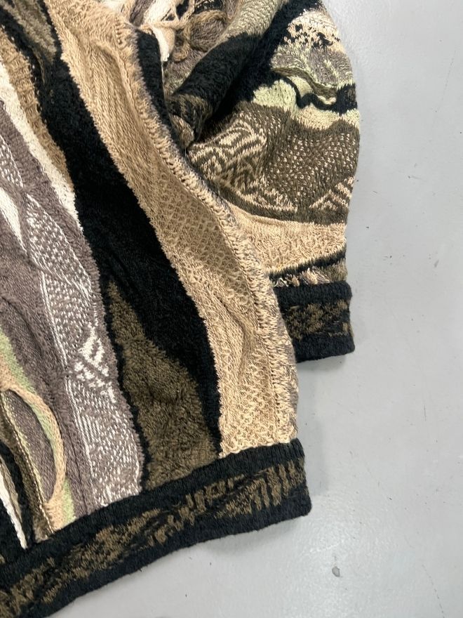 Authentic Vintage Coogi 3D knit sweater in multicolor. Men’s size M (EU 48–50). Used condition with visible wear as shown in photos. Bold 3D texture, iconic streetwear design, and collectible vintage piece. Measurements provided.