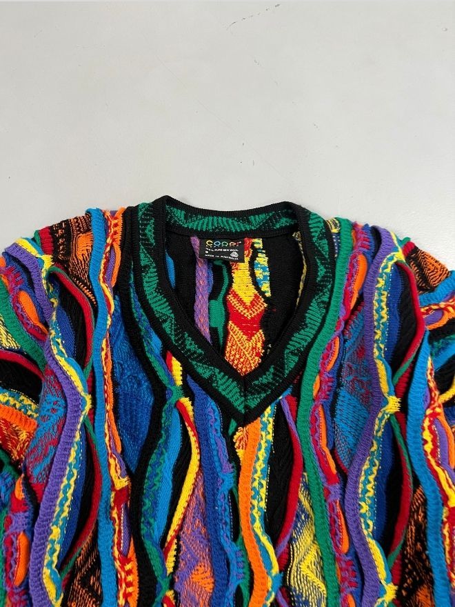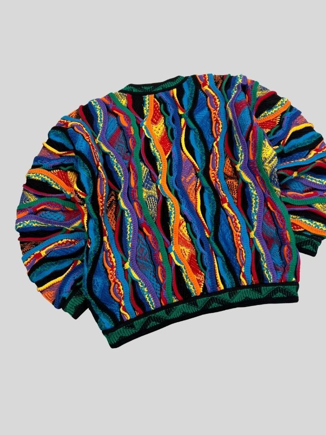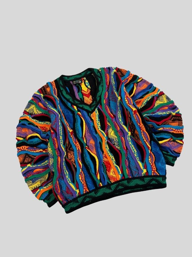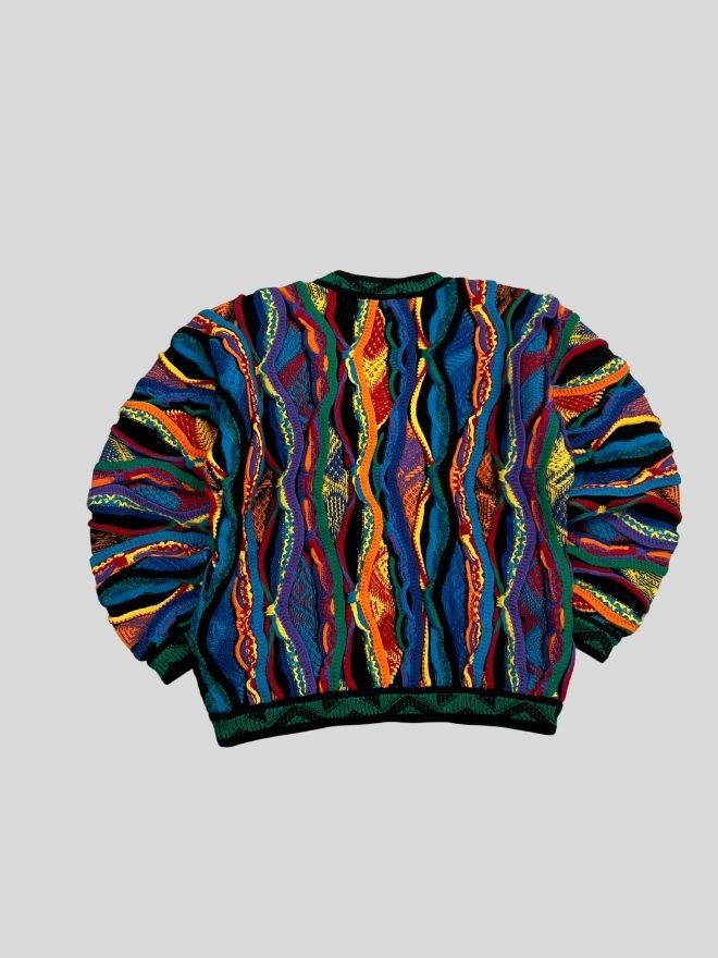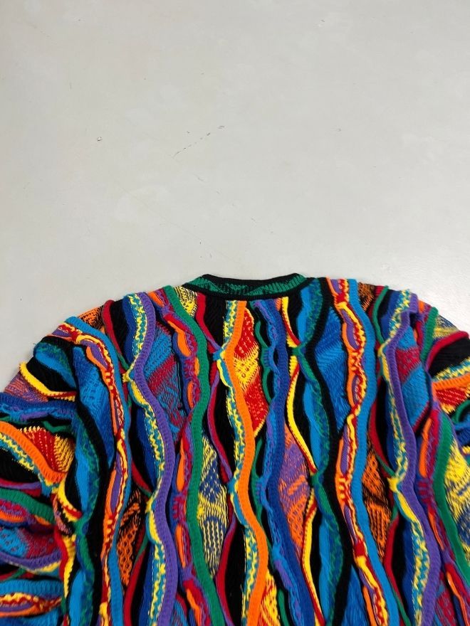 Elevate your vintage collection with this Vintage Coogi 3D Multicolor Knit Sweater — a true standout piece known for its bold texture, intricate woven patterns, and iconic color layering. Loved by collectors, stylists, and streetwear enthusiasts, Coogi knitwear remains one of the most recognizable luxury vintage styles in fashion culture.