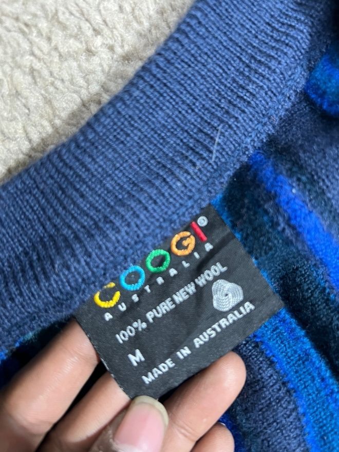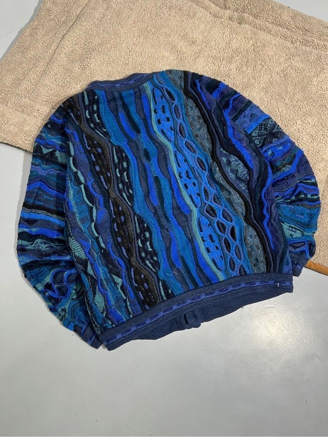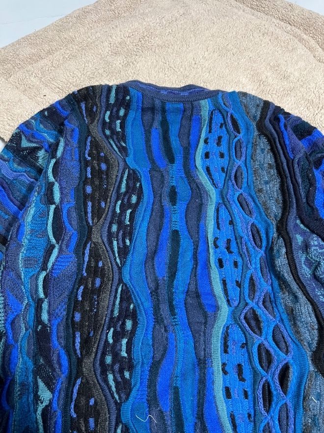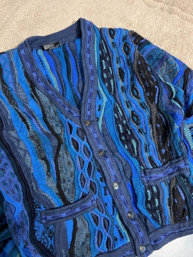Authentic vintage Coogi 3D multicolor knit cardigan. Bold texture, vibrant colors, and classic streetwear appeal. Size M.