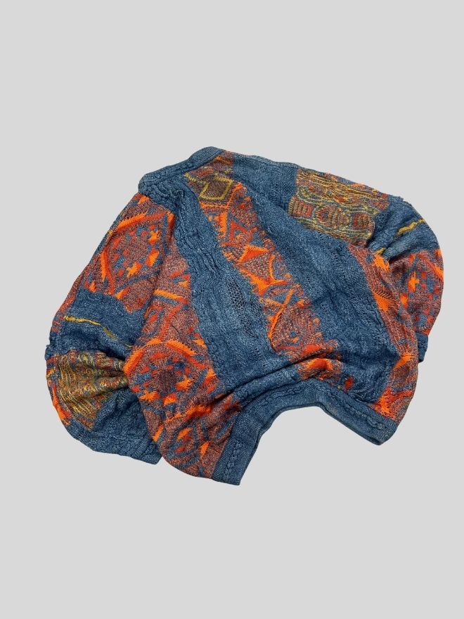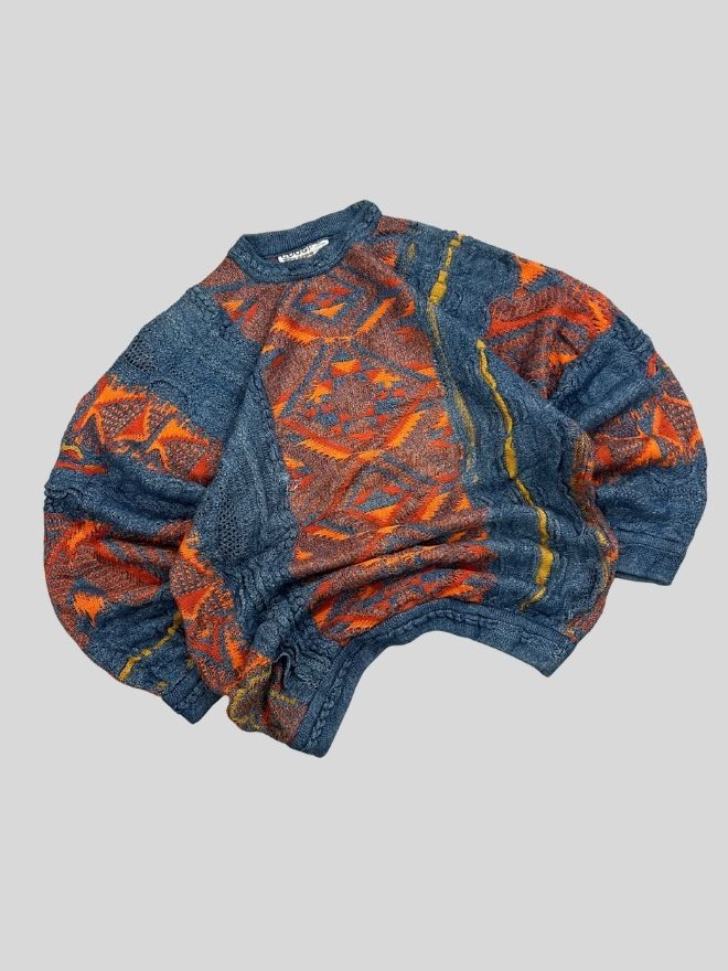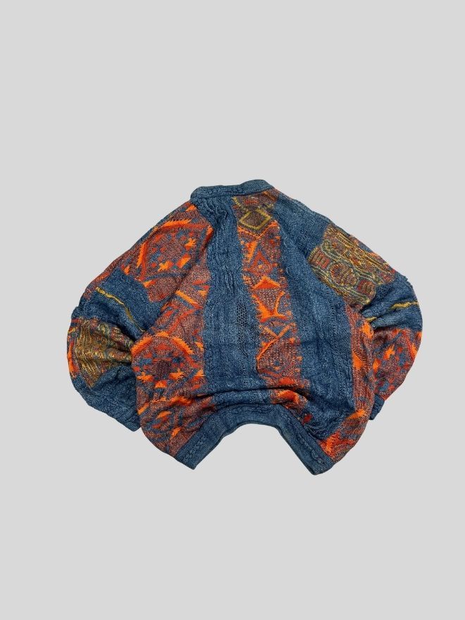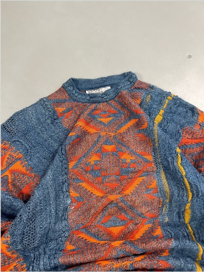 A rare original Coogi knit featuring the signature 3D textured pattern and vibrant multicolor design. Perfect for collectors, hip-hop style, vintage wear, and archive fashion.