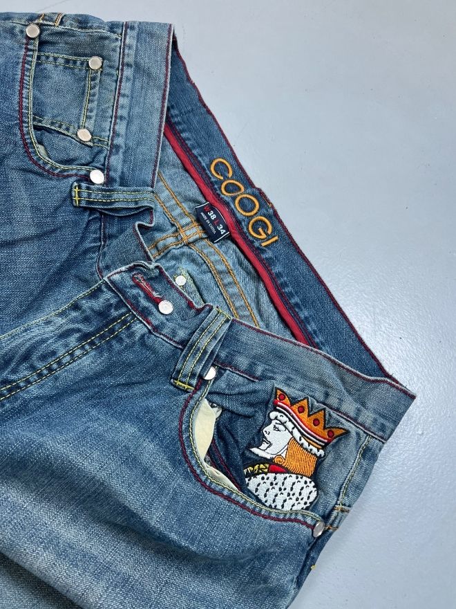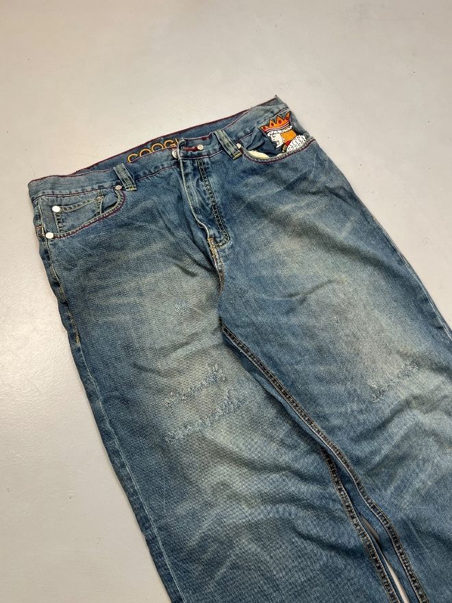 Vintage Coogi Joker Embroidery Baggy Fit Denim in classic blue wash.