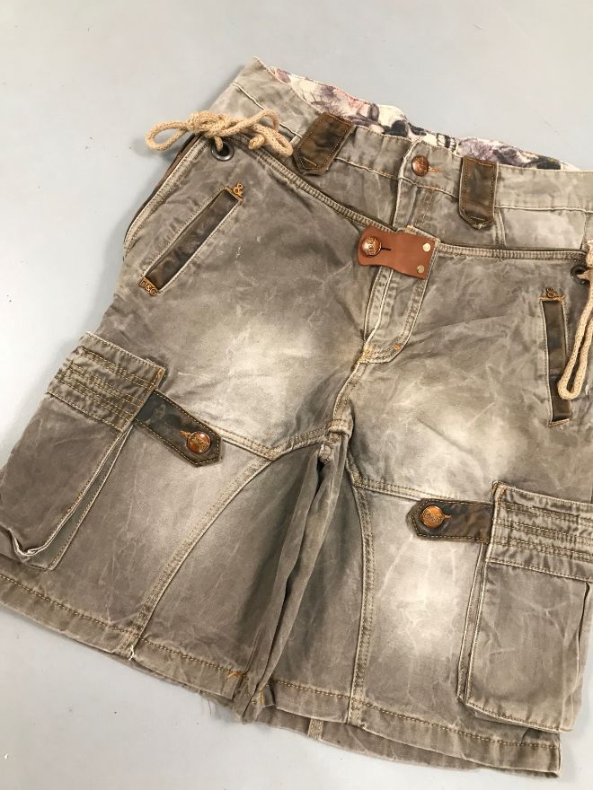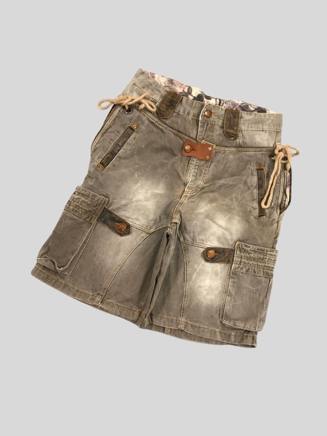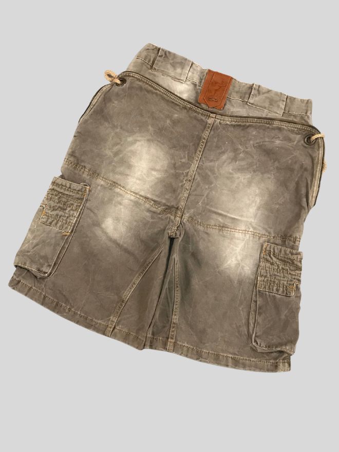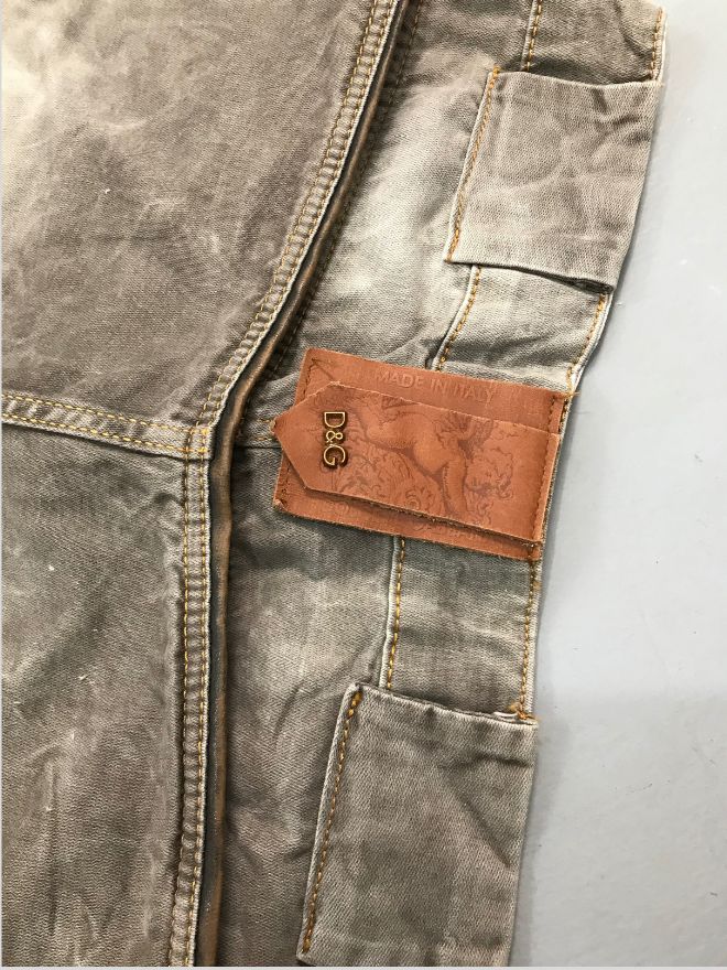 Authentic Vintage Dolce & Gabbana denim jorts in a rare brown wash — a bold luxury staple with a relaxed silhouette and premium finishing. Tagged Size 34, comfortable, durable, and well-maintained.