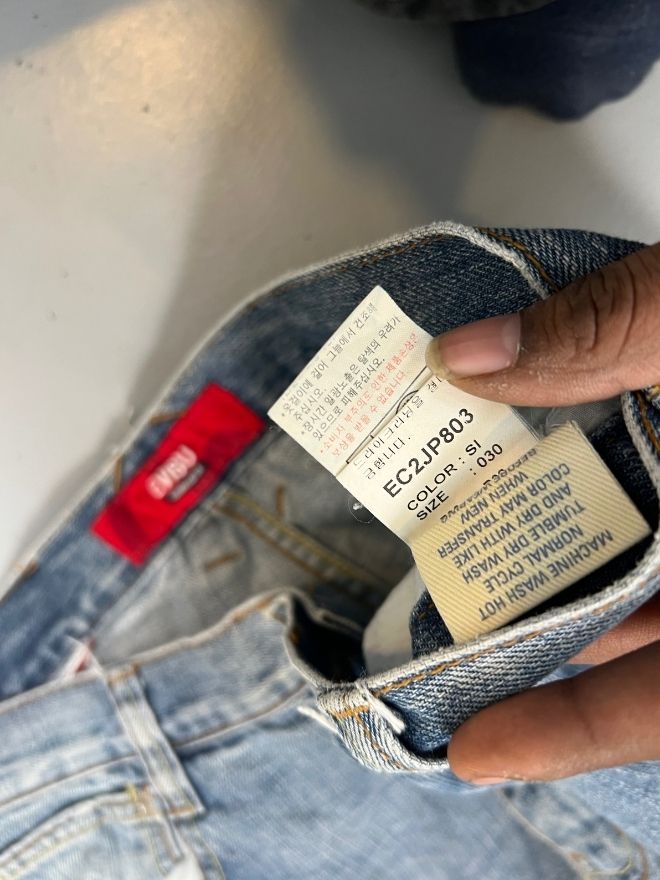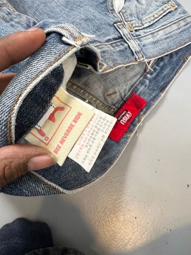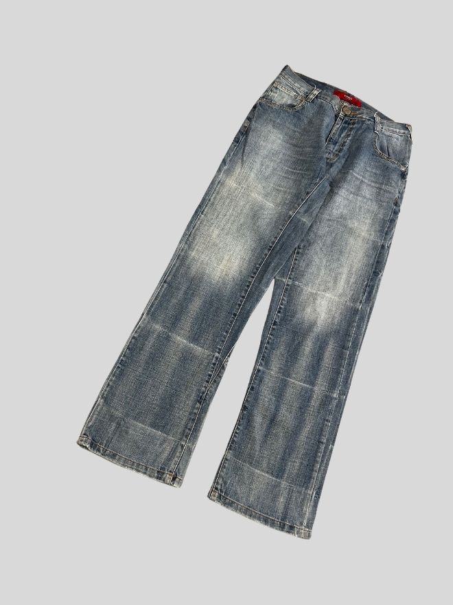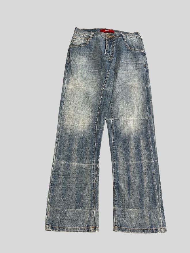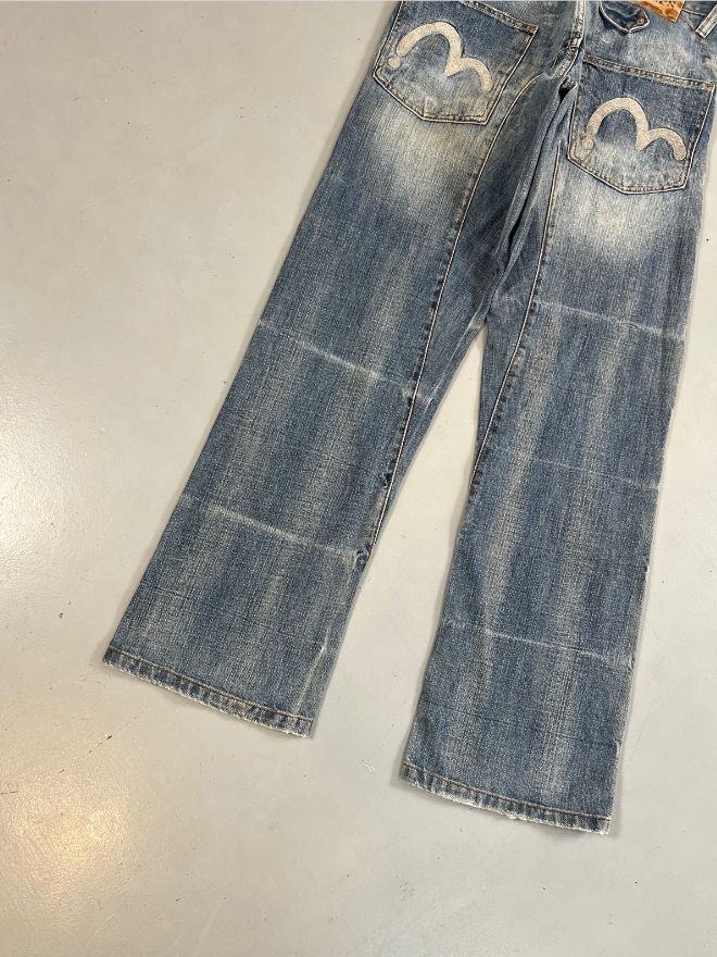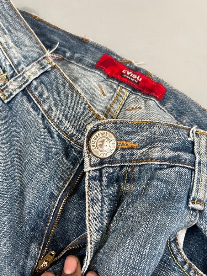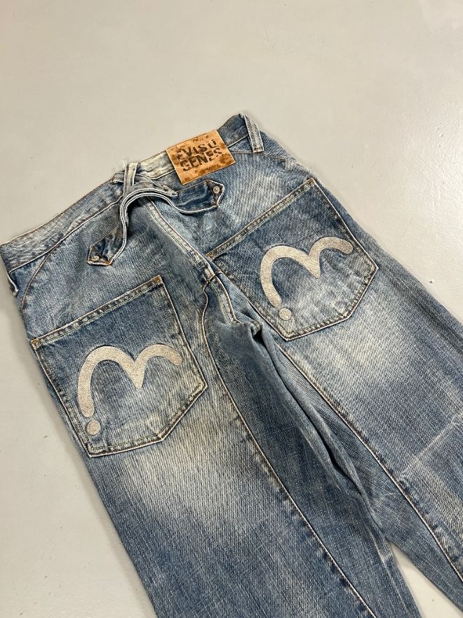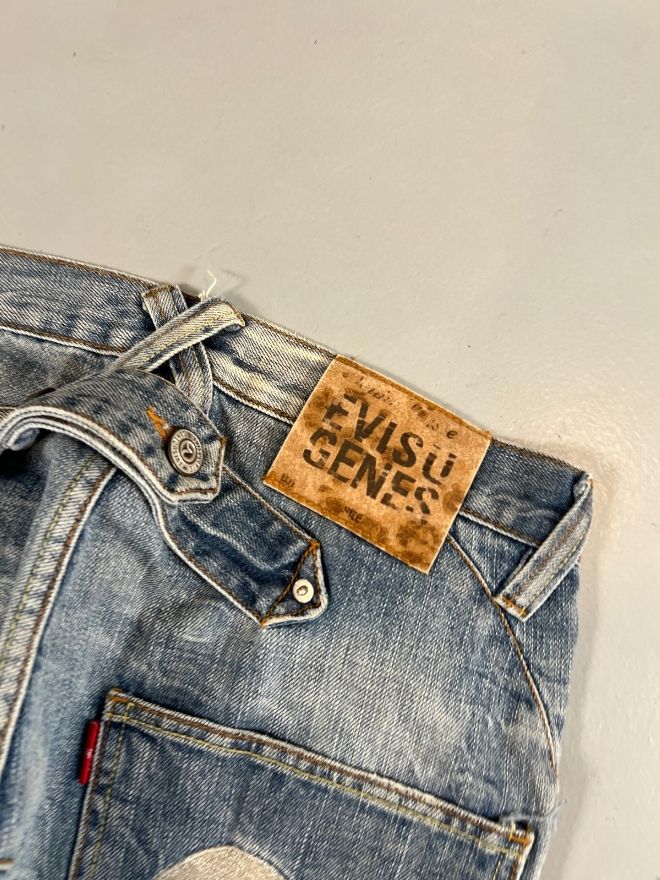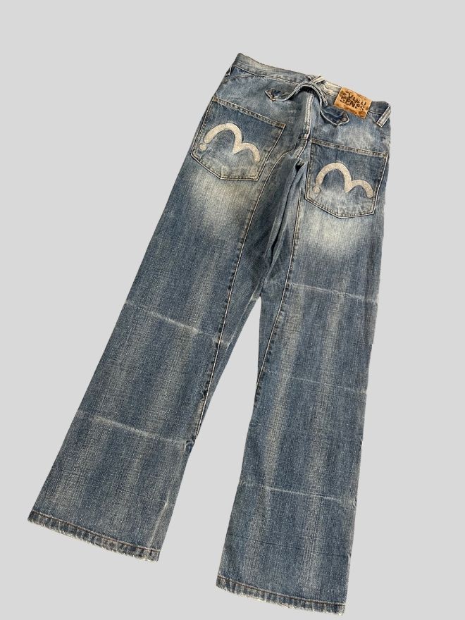 Vintage streetwear denim — rare buckle-style model inspired by archival Evisu silhouettes.